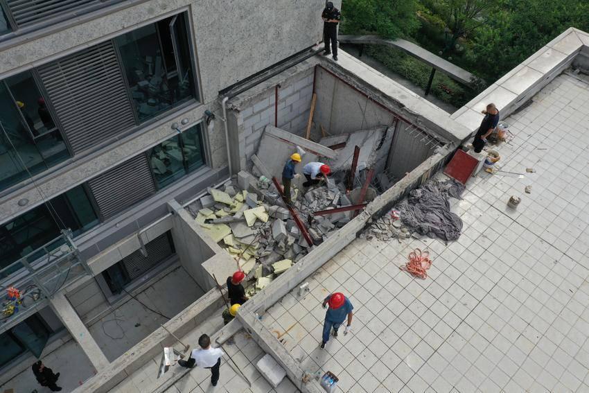 9月8日,武昌区城管执法局联合徐家棚街道,对友谊大道某新建小区室外平台一处新增违法建设实施依法拆除,拆除过程平稳有序。