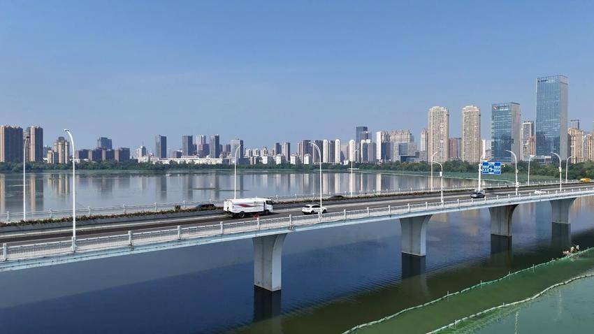 “日常作业,走完全程需要1个小时左右。”环卫工人姬德强用小型高压冲洗车的高压水枪,认真冲洗着人行横道和沙湖大桥护栏。全长2.6公里的沙湖大桥,机动车道可实现全机械化作业,但是人行道、路灯杆、果皮箱等设施,还是需要“人工精洗”来冲洗擦拭,让人行道及电线杆、护栏等设施洁净如新。