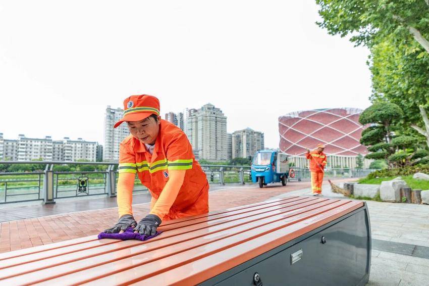 “以前觉得‘扫到看不见垃圾’就够了,现在我们都是‘蹲下来看地面,站起来查设施’。”正在擦拭东湖路城市家具的环卫工人戴梅花介绍,地面和道路干净是基本,城市立面、城市家具洁净才能让城市看起来更清爽舒适。