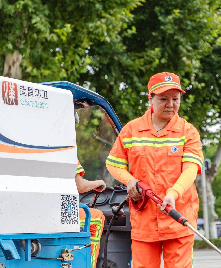 “亲水平台栈道不能有烟头,护栏要冲洗到‘手摸无灰’。”9月的上午,阳光还没有那么毒辣,中南路清洁队楚汉路班班长张燕接过高压水枪做起示范。11台三轮巡回保洁车、2台小型洗扫车、1台福龙马清洗车组成的“机械战队”,也成为班长张燕带领20名班组成员打造东湖路-楚汉路-沙湖大桥4.58公里示范路的“底气”所在。