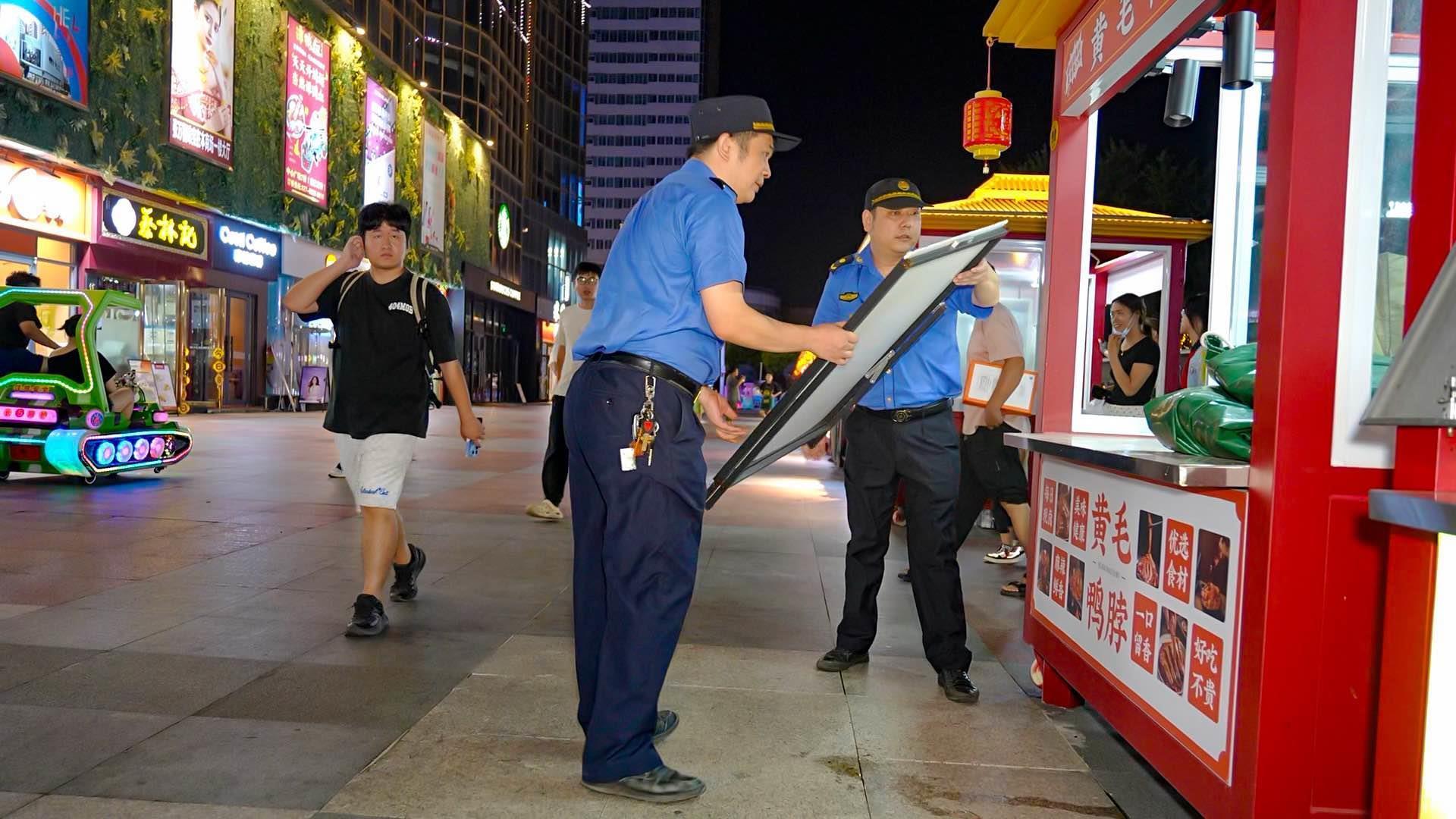 在仟那广场、中心广场、茅庙集等特色街区,以及黄狮海南路、将军二路等夜市区域,执法人员加强巡查,引导商户规范经营,既满足市民消费需求,又保障道路通畅和环境卫生。
