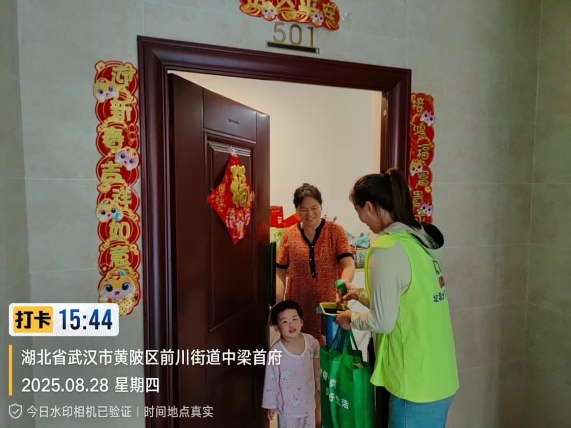 “以前总担心厨余垃圾放久了有异味,现在小桶就放在水槽边,削个土豆皮、摘个菜,随手就能分好,太方便了!”家住黄陂区中梁首府的王女士拿着刚领到的小型厨余桶说道。