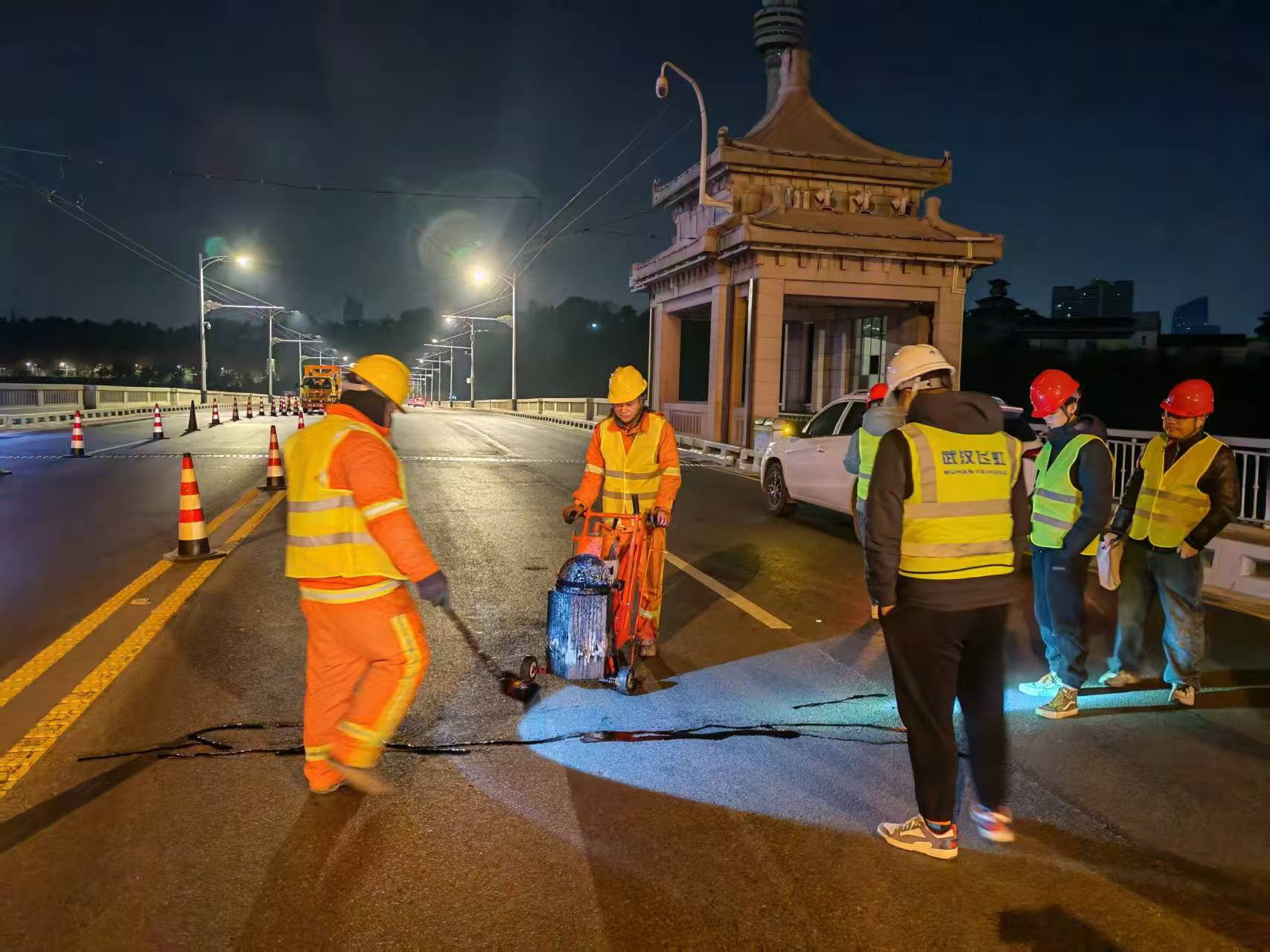 武汉长江大桥于1957年建成通车,在长期使用中桥面沥青铺装层存在顽固性破损、坑坑洼洼现象。对此,市城管执法委积极会同市城运公司开展调研,组织专家研讨多种修复方案,最终决定以局部修补+还原剂封层方式开展修复行动,确保路面层修复见到实效。