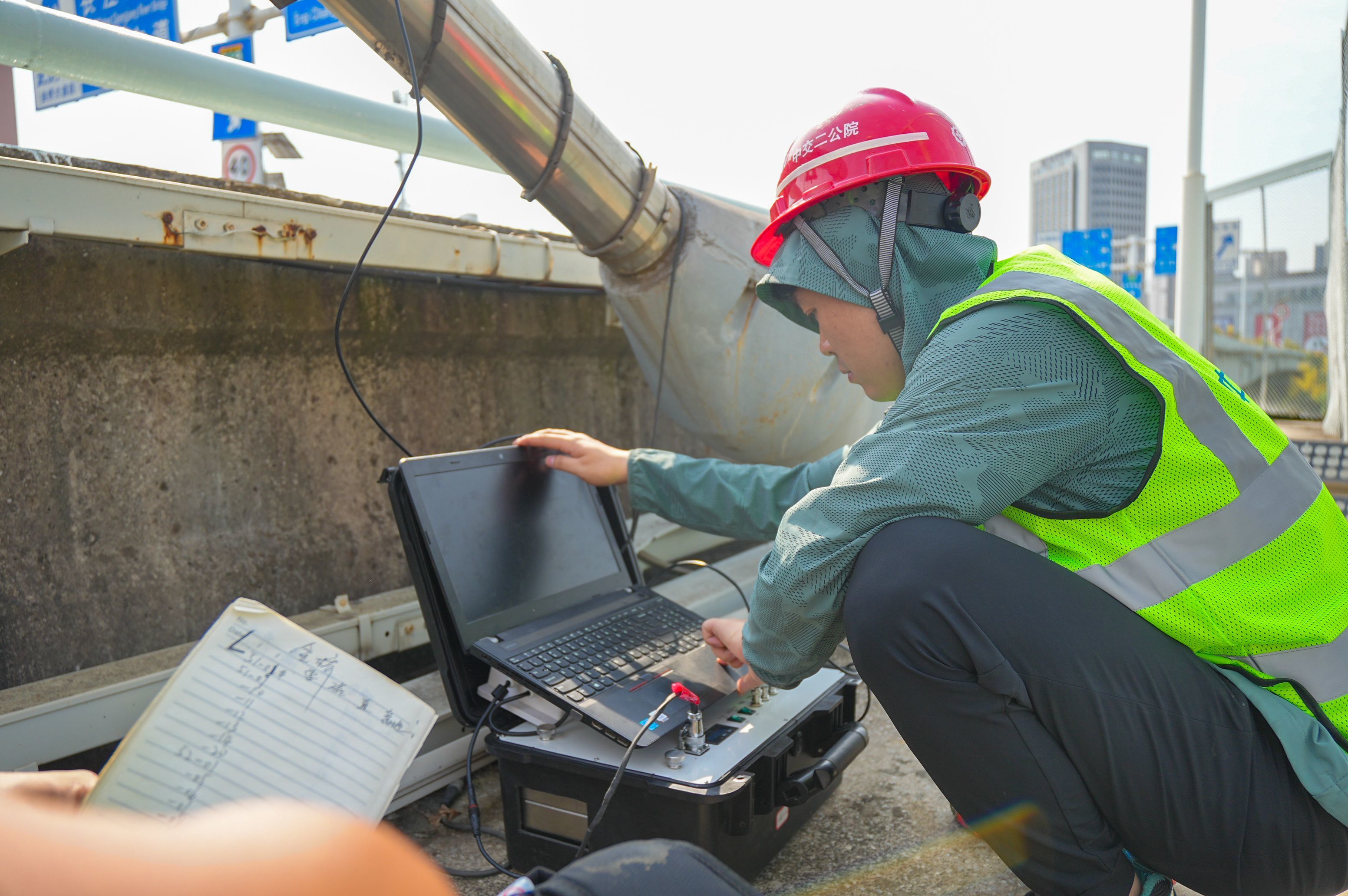 在桥梁结构特殊检测层面,使用超声检测仪、裂缝测宽仪、钢筋扫描仪等专业设备,对裂缝长宽深、内部缺陷状况、混凝土强度、碳化深度、钢筋锈蚀及混凝土表面电阻率等开展“全方位深度诊断”,精准探查混凝土内部状态,科学评估其实际承载能力,确保桥隧满足安全运行要求。