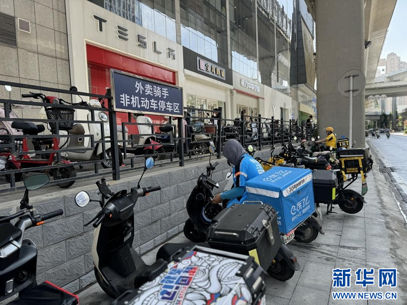 在汉阳区王家湾商圈,针对武汉摩尔城日均上千单的外卖配送量带来的停车乱、交通堵难题,汉阳城管联合街道、商场,将邻近商场的墨水湖北路高架桥下空间改造为非机动车停放区。