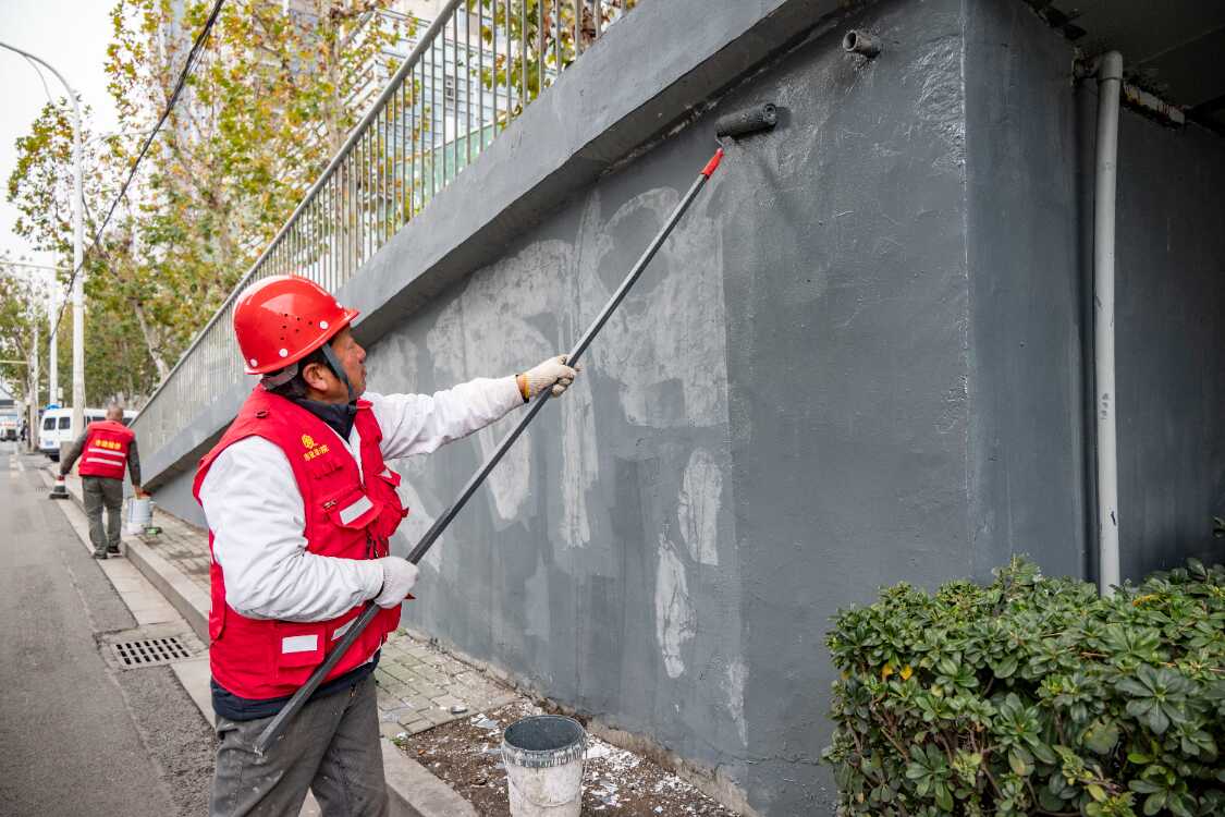 1月5日下午,在解放大道循礼门天桥施工现场,作业人员正使用刮刀、砂纸等工具,对护栏及其根部进行细致打磨,彻底清除锈迹与旧漆。针对不同材质,施工采取差异化处理:对钢构件进行专业除锈后,涂刷防腐底漆;针对桥梁侧立面混凝土脱落破损等情况,则对混凝土表面重新进行防护涂装,最后统一喷涂环保、耐久的高性能面漆,进一步提升天桥护栏的抗腐蚀能力和外观品质。