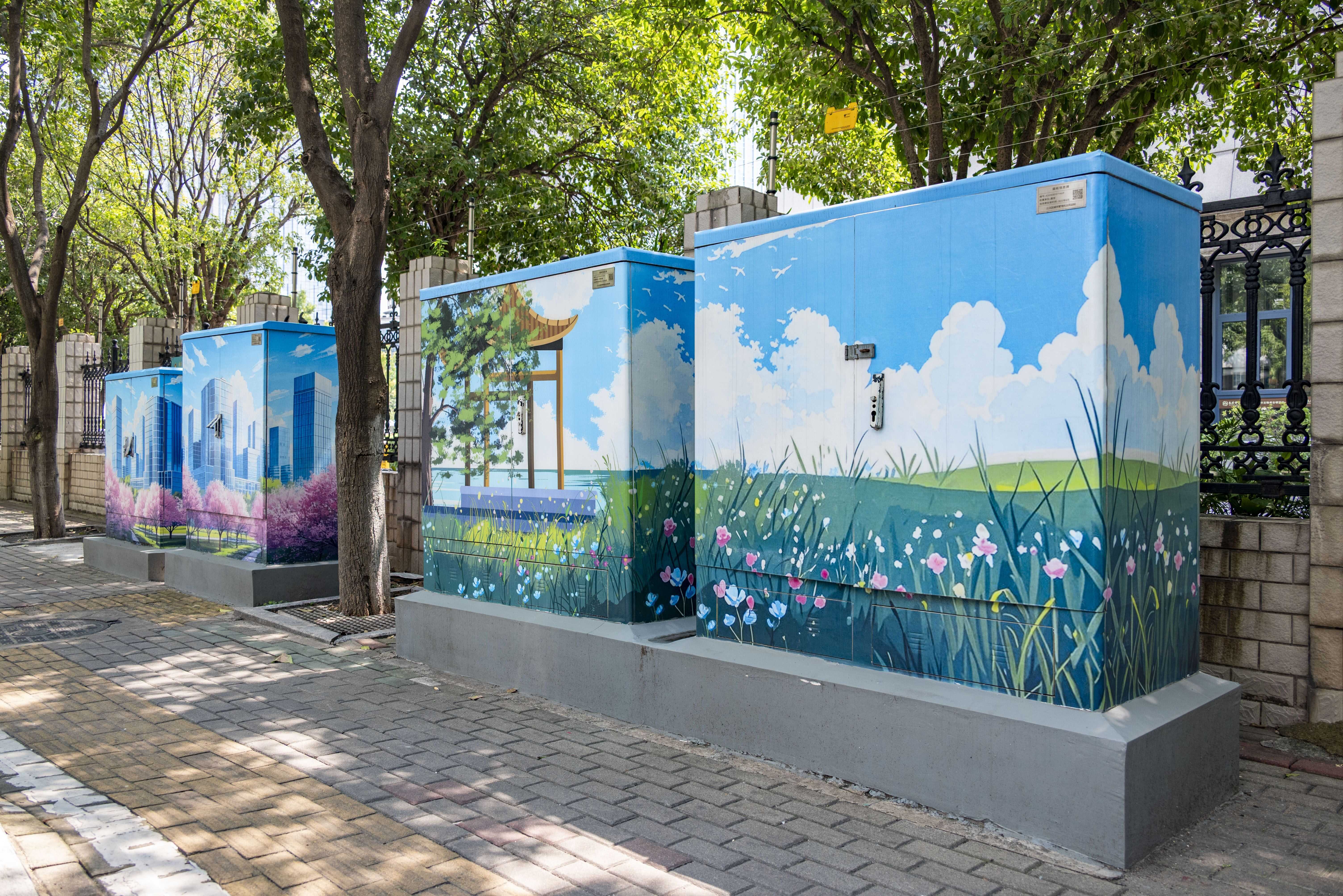“箱体美化不是简单涂鸦,要与街边环境融为一体。要兼顾美观、安全与功能。”项目施工负责人吴畏介绍,施工前会来每个箱体现场勘察并拍摄照片,依照周边环境进行设计。同时会对箱体进行全面清洁、除锈、加固,彩绘采用环保耐候防胶涂料,确保日晒雨淋后不易褪色脱落,“小广告”粘不上;同时严格避开箱体开关、接口等关键部位,不影响设备正常检修,真正实现“好看又好用”。