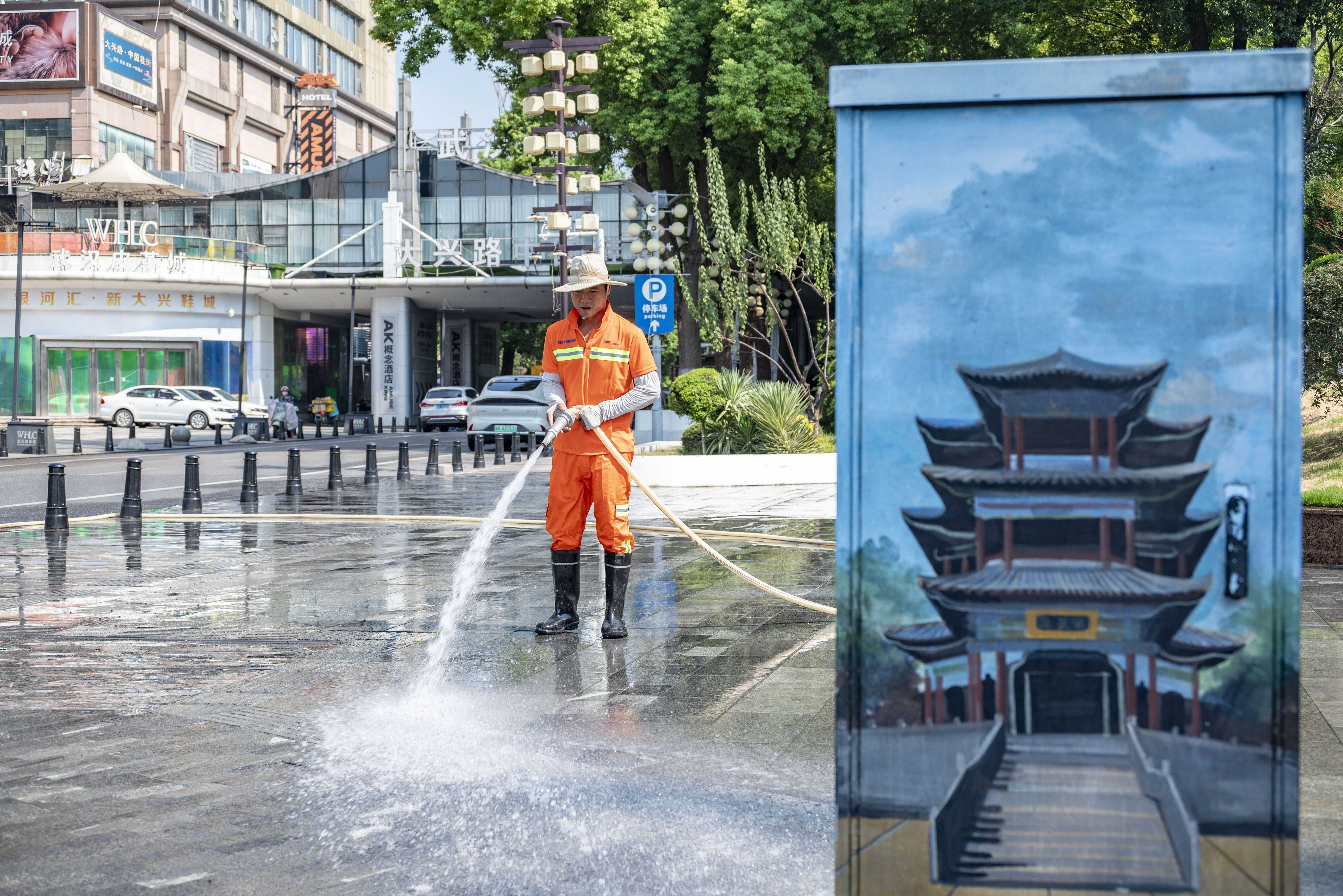 在江汉区沿江大道,江汉区城管执法局紧密围绕“水文化”与江城地域特色展开设计,以江流、波浪、船影、码头文化等为灵感,创作出一系列色彩清新、构图灵动的手绘图案。在公园周边道路,箱柜美化摒弃了千篇一律的图案,转而紧扣每个公园的自身主题与特色进行独家设计。