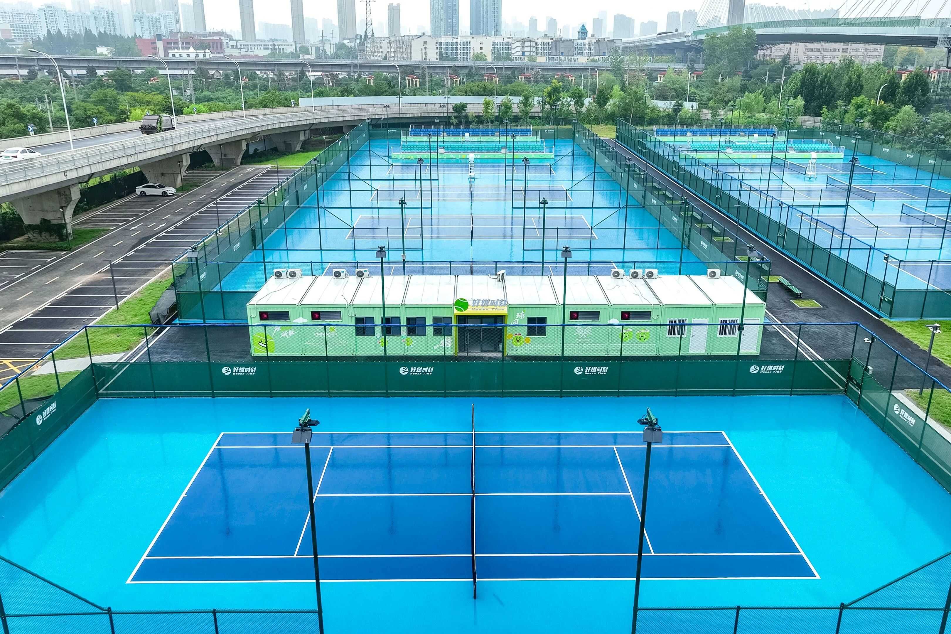 一旁的标准网球场设施设备一应俱全,地面平整、围网规范,可满足市民日常健身与专业训练需求。