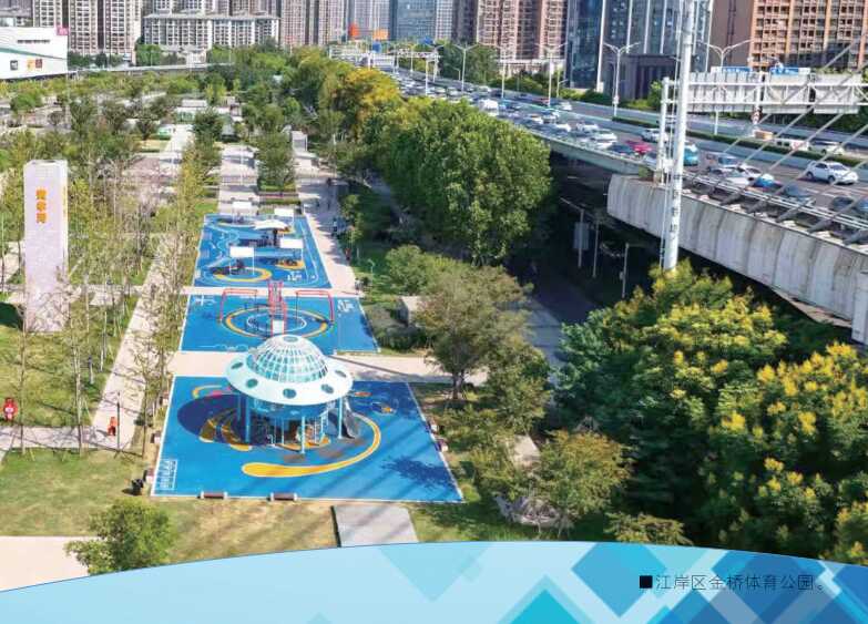 江岸区金桥大道与石桥一路交会处,一座“地下净水厂站+地上体育公园”的复合空间成为市民健身好去处。地上是老人健步、孩子奔跑、青年打球的金桥体育公园,公园内不仅拥有无动力乐园、多种球类场地,更引入了单方位体测亭、智能竞赛车等一批“科技感”十足的健身设备,日均接待市民超千人次;地下则是一座大型净水厂,每日可处理10万吨水,可用于绿化灌溉和生态补水。通过“地下厂站+地上公园”的创新模式,金桥体育公园实现了高密度城区的空间复合利用:地下,清流涌动,碧波润城;地上,市民漫步游玩,运动健身,成功打破传统污水处理厂的“邻避”效应,转变为深受群众欢迎的“邻利”工程。