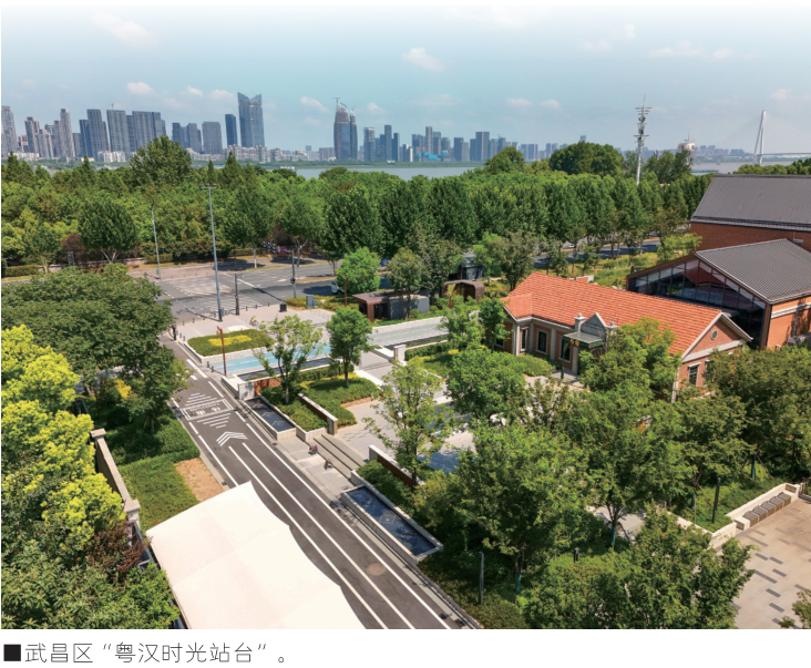 同样在武昌,杨园街道粤汉里社区内一座打通社区与临江生态长廊的广场,不仅让一度荒废的角落焕然新生,更成为5000余户居民共享的活力空间。这里不仅拥有喷泉广场、林荫休憩区和趣味互动空间,更以1:1复刻的1912年粤汉铁路职工诊病所建筑,延续着社区的百年情感记忆,将“背江而行”彻底转变为“面江发展”。社区居民们还热情捐献了200余件铁路‘老物件’,将在新建成的展馆中展出,让历史‘触手可及’。