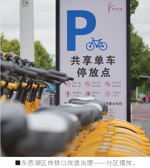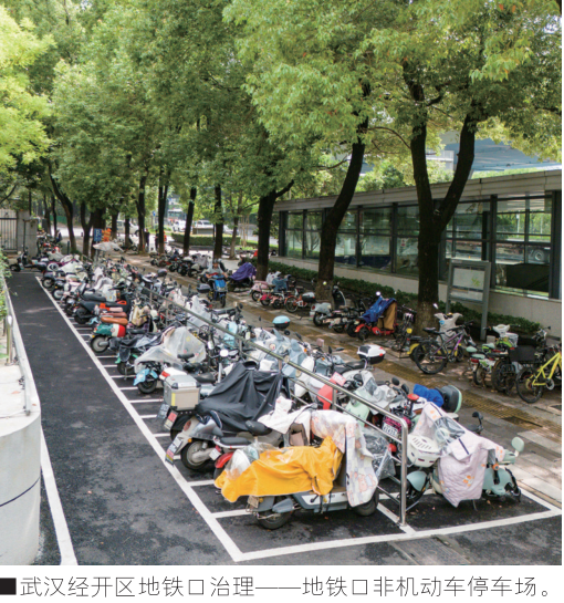 地铁口曾是城市治理的痛点。在东西湖区金山大道二雅路地铁站,曾经电动车、共享单车围堵站口、“见缝插针”的景象已不复存在。通过地面硬化、科学划定停车区,这里新增了500多个电动车位。东西湖区城管执法局推行“分区管理”:白色框为居民电动车“长停区”,黄、蓝色框对应不同品牌共享单车,并依据车流量对全区78个轨道站点出入口实行“分级管控”,让通勤末端从混乱回归有序。