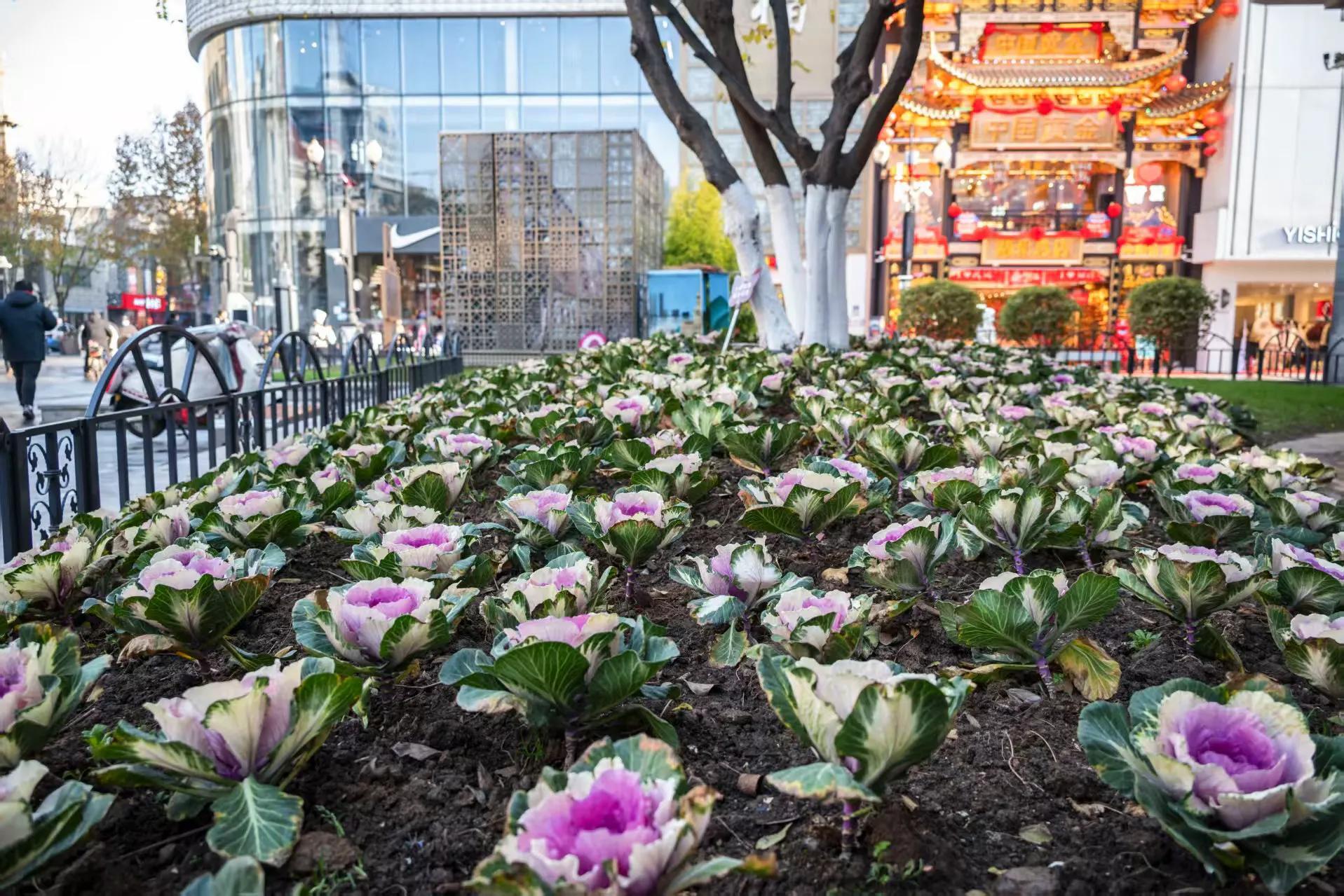 此外,对中山大道、江汉路等交通路口区域的架空管线开展了专项排查,整治管线随意牵搭、松散垮落等问题,进一步净化城市空间视觉秩序,保障公共安全。提升园林景观 扮靓街区颜值园林绿化部门精心开展节日景观布置,着力为市民游客塑造美好的绿化环境。在江汉路商圈,75个精致花箱与近600平方米的花坛地栽已焕然一新,栽植了羽衣甘蓝、角堇、石竹、紫罗兰、金鱼草等多种时令花卉。这些花卉色彩层次丰富,形态错落有致,为热闹的街区增添了自然雅致的节日氛围。