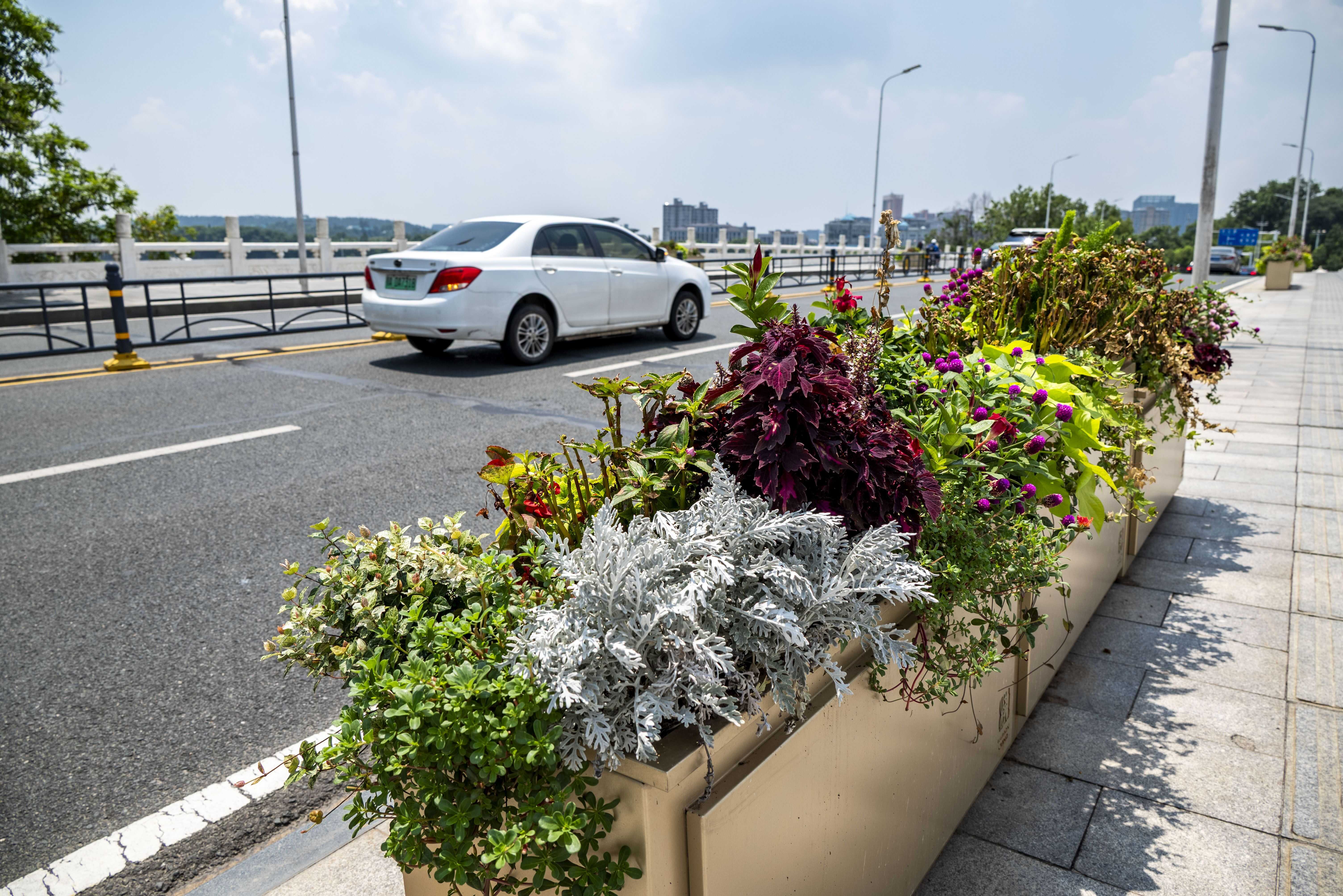 中南路、中北路的主干道中分带上,月季盛放如粉红斑斓的道路锦带;洪山环路的月季“淑女”绕广场绽放,一年三季的花期让浪漫得到延续;交通渠化岛换上三色堇、羽衣甘蓝,成为等待红灯时的微型花园;双湖桥14组花箱搭配常春藤与一品红,洪山路的精品花箱成了市民打卡点,市民感叹“看着月季开得旺,新年氛围都浓了”。