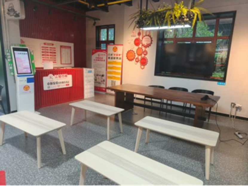 一江源党群服务站占地面积460平方米,此前作为闲置房屋未能得到充分利用,周边文体娱乐设施也不齐全。宗关街道申新社区以“服务党群、凝聚居民、促进共治”为宗旨,通过科学的功能分区与多元服务载体,依托“申新社区合伙人”机制,整合政府、企业、社会组织及居民等多方力量,形成共建共治共享的社区治理新格局,将该处闲置房屋打造为集党群交流、便民服务、文化休闲于一体的综合性服务平台。目前,一楼交流活动区建设咨询室、匠心坊、图书室、多功能活动室、党群交流活动厅、居民议事厅等活动空间,为心理、法律咨询,手工艺制作,阅读,运动,交流座谈等活动提供便利条件。二楼多功能会议厅,可容纳百余人,支持会议、讲座、培训等活动,为社区发展提供智力支持与资源对接平台。此外,作为一个综合性城市驿站,还提供许多特色服务,打造工会户外工作者爱心驿站、无声理发服务、红领网格驿站、巾帼家政联盟等载体,为户外工作者提供暖心服务,为听障人士特殊群体创造就业机会,打造水电气“一站式”服务平台,整合优质家政资源助力社区女性就业创业,为居民提供保洁、育儿、养老等专业化服务。