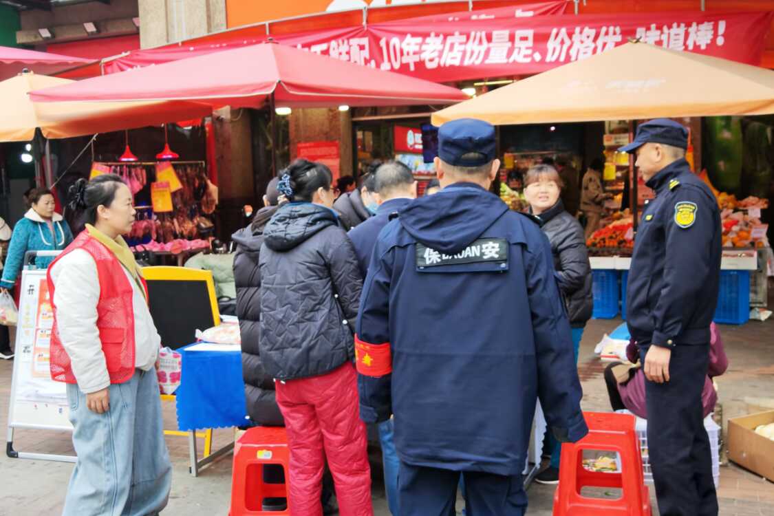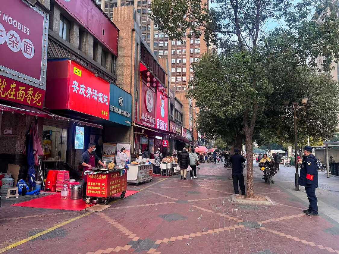 目前,商业广场的管理已形成明确且人性化的规范:一是实行“规范外摆”政策,允许门店适当外摆经营,但所有摊贩必须在物业与综合执法中心共同划定的黄线范围内有序开展经营;二是压实卫生责任,严格按照武汉市“门前三包”责任制要求,明确摊贩需在每日经营结束后,及时清理周边垃圾,确保场地整洁无残留;三是建立联合巡查机制,由街道综合执法中心、社区、物业三方组建专项巡查小组,每日上午7点至11点、下午3点至6点开展常态化巡查,对违反规定的摊贩及时进行劝导教育并协助整改,全力维护公平有序的营商环境。