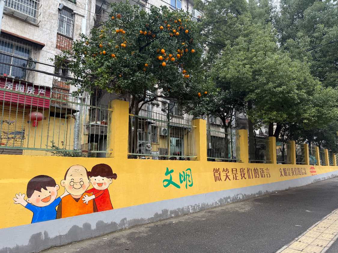 此次文化墙建设主要围绕两大主题展开:一是“地域记忆”主题,通过艺术手法再现黄鹤楼、武汉长江大桥、张公山寨、白玉公园等标志性景观,勾勒出浓厚的乡土情怀与集体记忆;二是“人文新风”主题,围绕廉政建设、生态环境保护、河湖治理、城市文明等当代议题进行生动诠释,以直观的视觉语言倡导文明健康新风尚。原本朴素的墙体由此转变为一条承载历史、传播文明的“露天艺术画廊”,实现了环境美化与人文熏陶的有机结合。