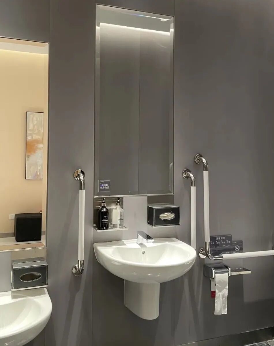 △武汉SKP商场内的厕所在不同高度设置了扶手。