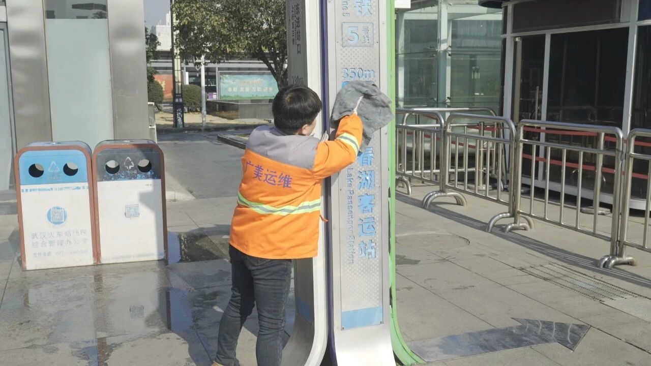 “大家放假的时候,就是我们最忙碌的时候。能让外地游客看到武汉干干净净的,我们很高兴。”在湖北省博物馆正大门门口,环卫工人彭师傅一边说一边继续手中的活,“城市的整洁就是我们的年味。”