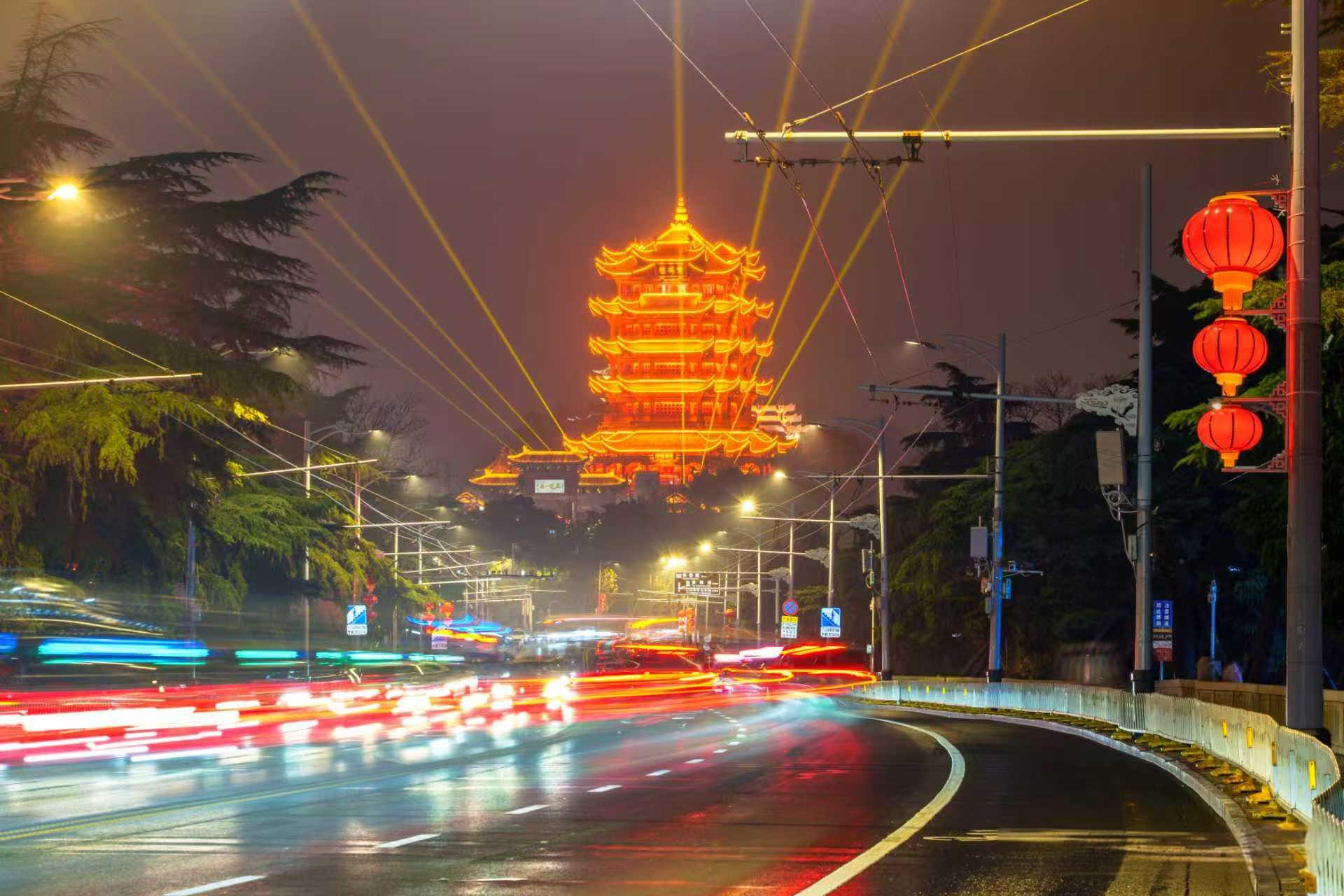 营造年味同样是城管人的重要答卷。早在小年前,武汉市城管部门就在主 要道路桥梁、窗口地带、特色街区悬挂起大红灯笼和中国结,169条道路换上“年装”,展示周期覆盖小年、除夕、元宵等新春重要节点。当夜幕降临,景观照明开启“节日模式”,两江四岸楼宇被光影点亮——奔腾的骏马跃上幕墙,樱花、热干面等城市符号在夜色中流转,光影动画与街头微景观交相辉映,共同绘就“灯火耀新春,骏马迎新年”的新气象。武汉市城管执法委一级主任科员马栋榉: