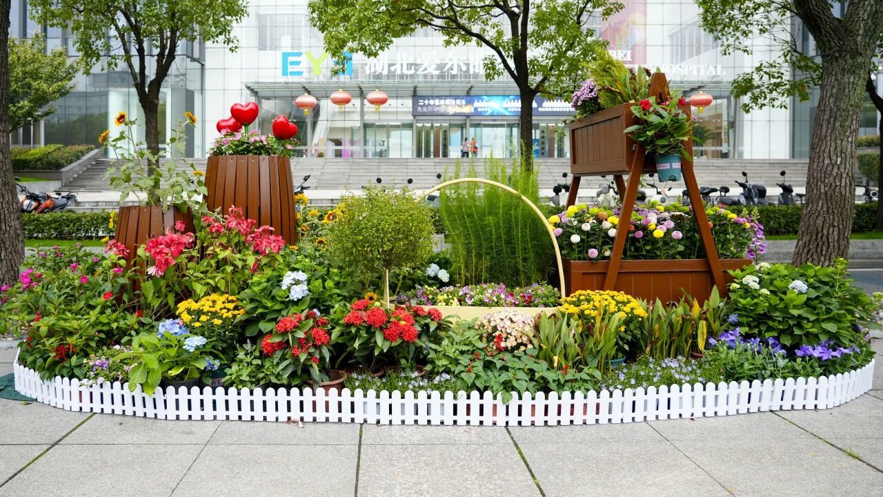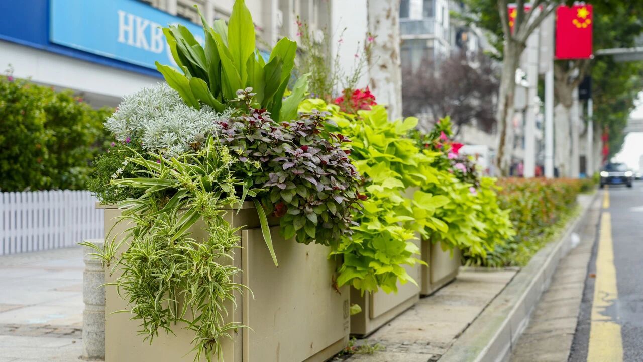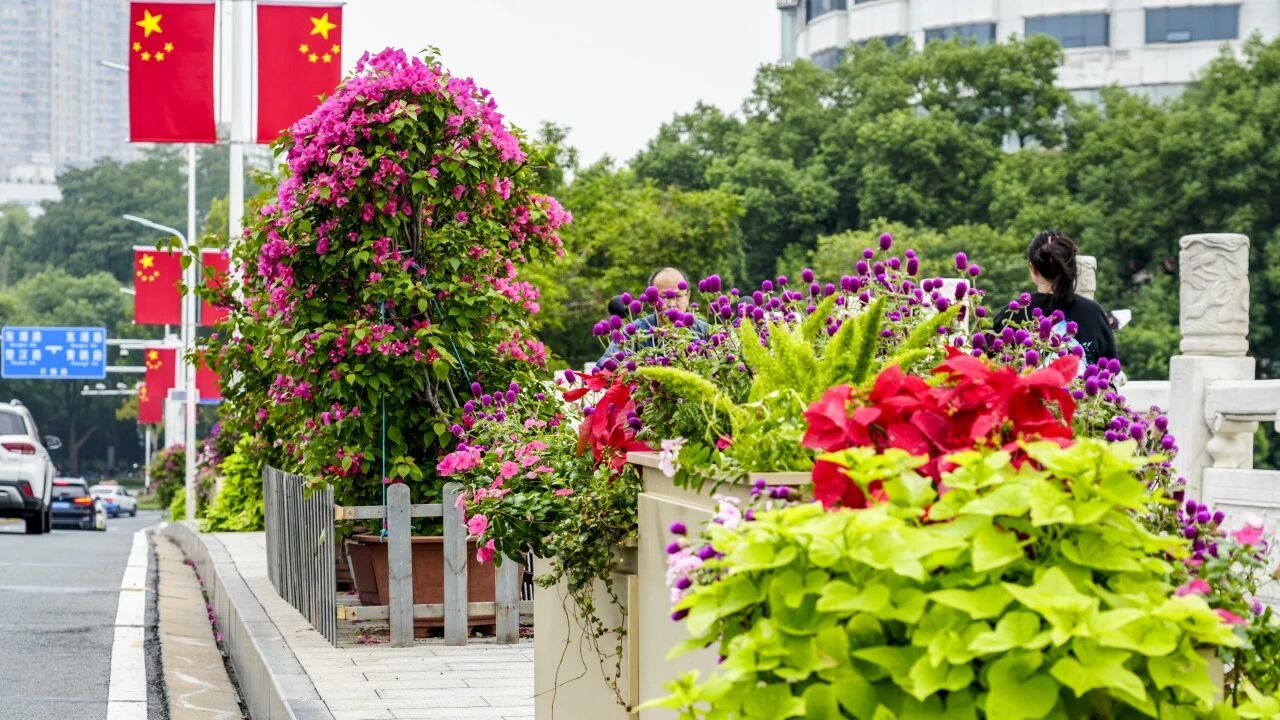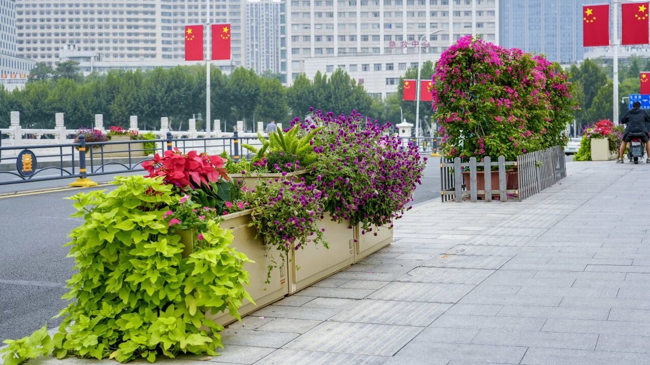 各式各样的微型景观及精品花箱点缀街头,营造出浓郁的节日氛围。每一处景观都精心设计,既展现城市美学,又传递对祖国的美好祝福。
