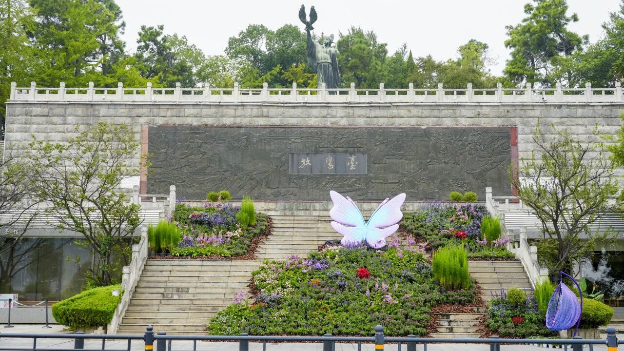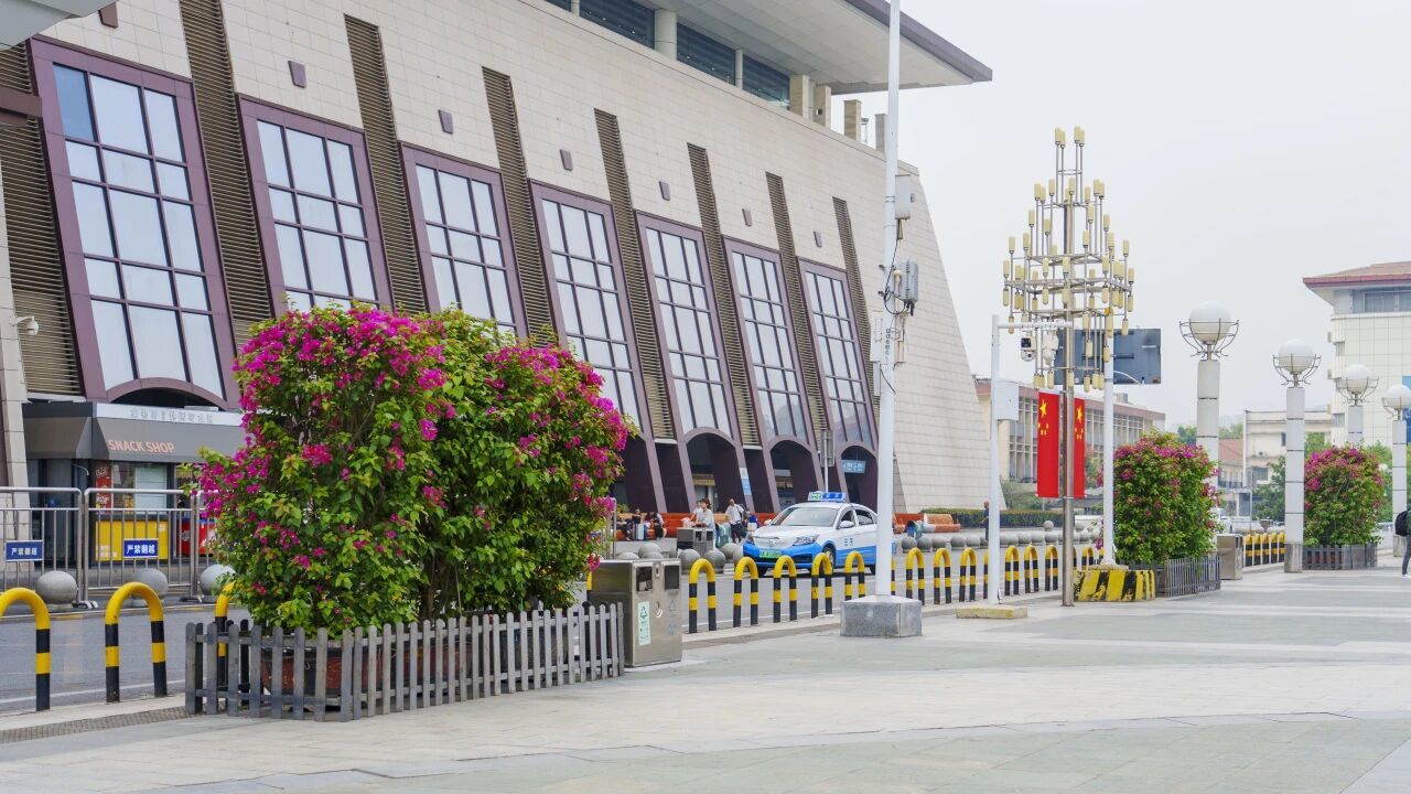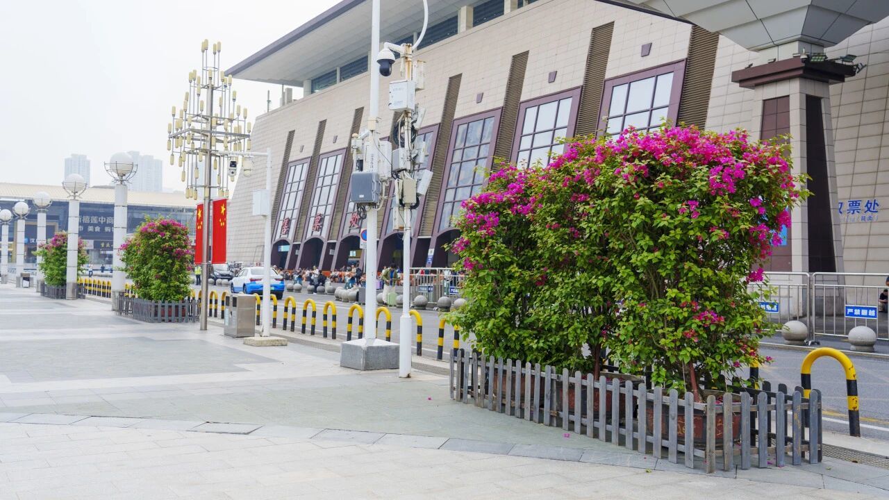 △武昌火车站西广场,盛开的三角梅迎接八方宾朋
