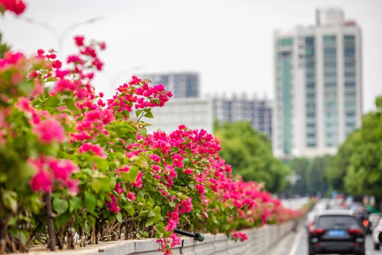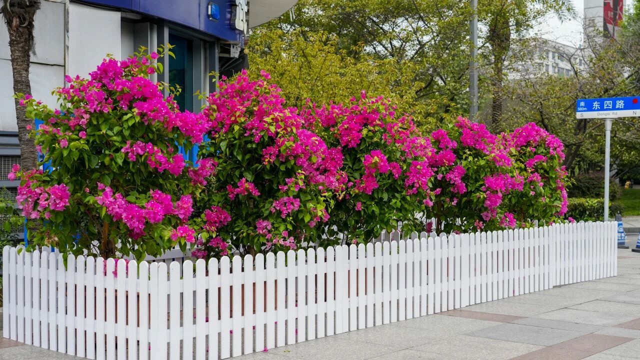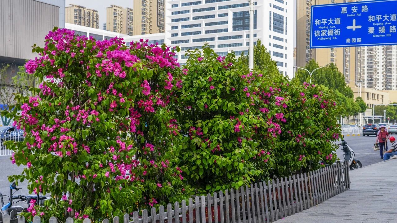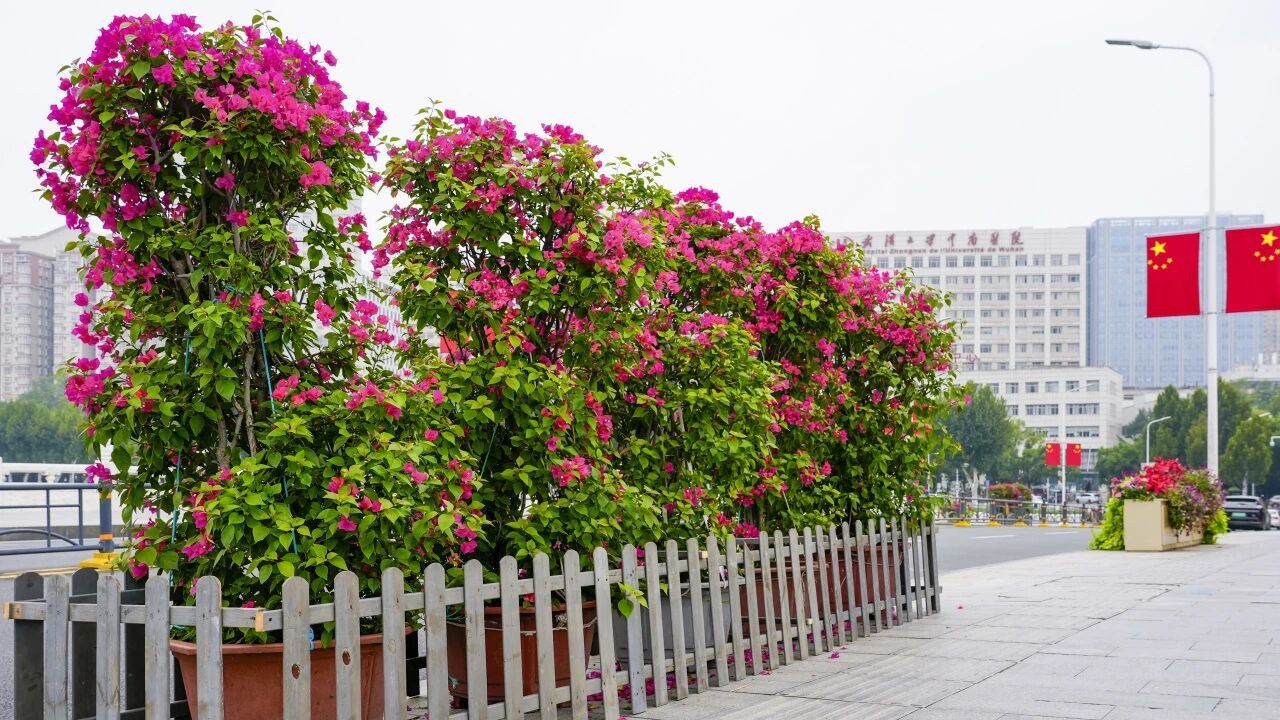为营造更加浓郁的节日氛围,武昌区绿化队在洪山路、徐东大街、中南路、中山路等路段精心布置了448盆大型三角梅。这种大型三角梅与护栏相结合的布置方式,使得花卉层次分明,宛如一幅栩栩如生的立体油画。