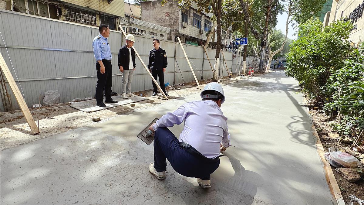 然而,居民出行习惯的改变并非一朝一夕。一些居民担心新通道建成后,周边居民都会从自家门口经过,出于安全和隐私考虑,在家门口安了铁栅门,堵住了通道。宝丰街道综合执法队员与社区网格员多次上门做思想工作,告知居民家门口已安装监控设备,无需担心安全问题,并与居民谈心:“道路改造是暂时的,工地早点完工,周边环境也会大大提升。”