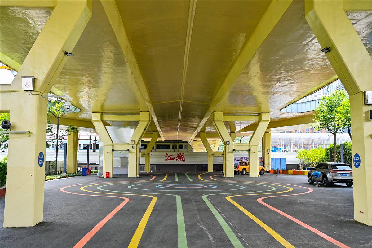 “五一”期间,长江二桥汉口岸黄浦大街段,桥下空间二期工程投入使用,“时光花园”里引入了潮玩市集,“学享空间”变身艺术展厅,桥底通道通过灯光装置营造出星空隧道效果。最受年轻人追捧的当属轻轨1号线穿桥而过的拍摄点——列车轰鸣声中,工业风桥柱与霓虹灯箱碰撞出独特视觉效果,红色“江城”“武汉”标识日均吸引超500人次打卡,成功出圈。
