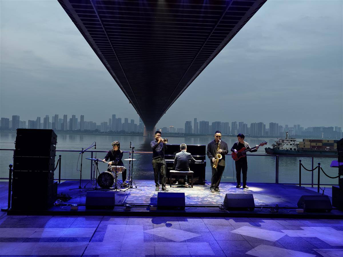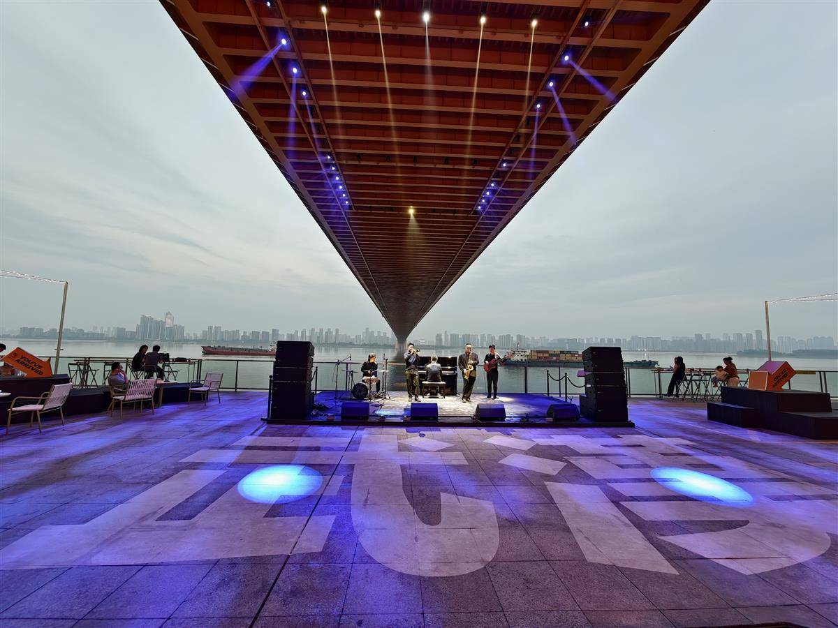 △5月16日,杨泗港大桥下“江影”融合空间彩排预演。