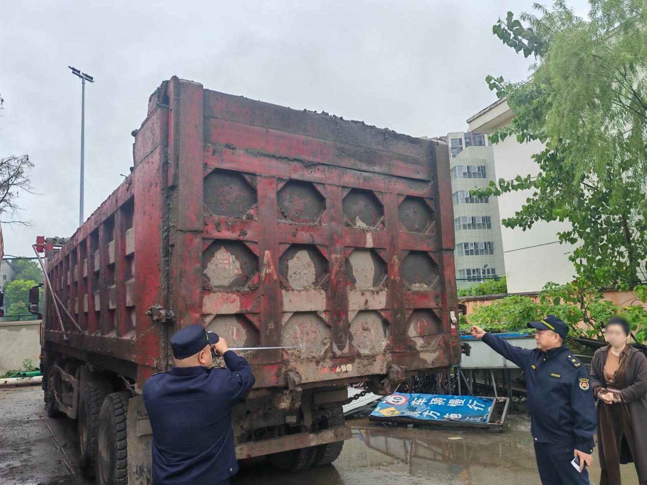 执法人员立即上前制止,并对现场情况进行拍照取证。经初步询问核实,上述车辆涉嫌未经核准擅自从事建筑垃圾运输,违反了建筑垃圾相关管理规定。据此,新区城管局依法对涉事无资质车辆所属公司立案调查,并现场下达《责令限期改正决定书》,要求相关责任方立即停止违法行为,限期整改到位。