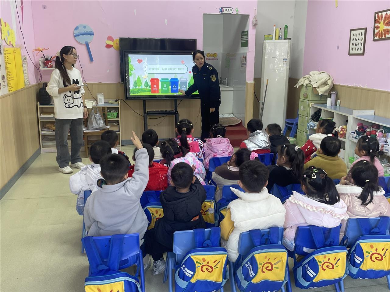为了让知识落地生根,执法队员详细讲解了可回收垃圾、厨余垃圾、有害垃圾和其他垃圾的分类标准,结合孩子们熟悉的玩具、零食包装等物品举例说明,并耐心科普各类垃圾的不同处理方式,让小朋友们清楚了解到分类后垃圾如何变废为宝、减少污染。生动的讲解、互动的问答,让孩子们在轻松愉快的氛围中掌握了垃圾分类技巧,更树立起“垃圾分类,从我做起”的责任意识。