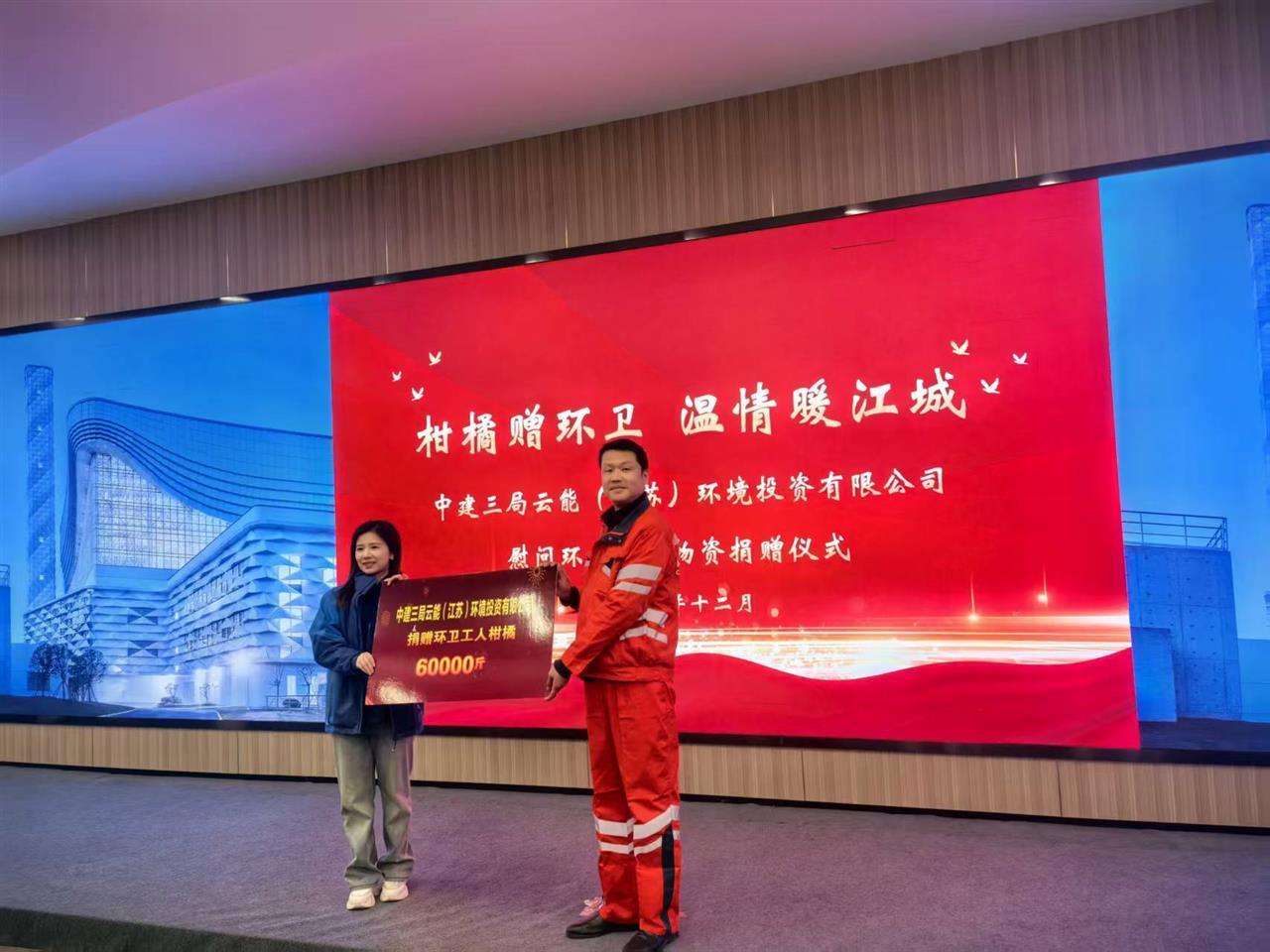 在千子山循环经济产业园,中建三局云能环境投资有限公司相关负责人将柑橘一一分发给现场的10余名环卫工人代表,感谢他们日复一日用汗水守护城市洁净。中建三局云能环境有限公司董事长高治中表示,环卫工人是城市正常运转不可或缺的基石,希望通过实际行动传递企业社会责任感,号召更多人尊重和关爱环卫工作者。