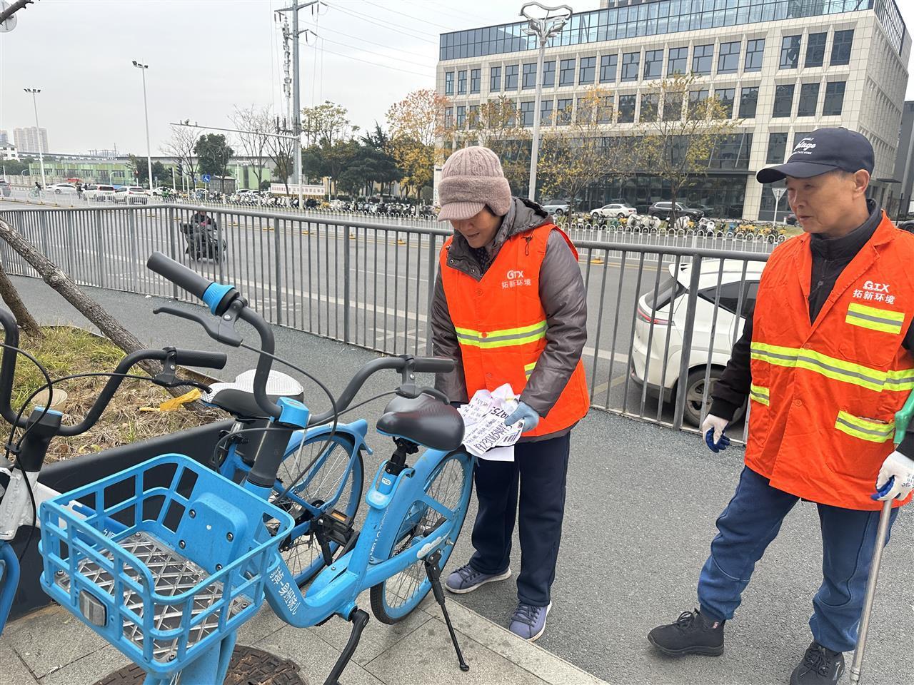 活动现场,环卫工人别业祥师傅拿着手里厚厚一叠小广告,向路过的市民进行分发:“共享单车是许多武汉市民下地铁后的‘最后一公里’,车身上的小广告就像牛皮癣,严重影响着市民的心情,也影响城市形象,清理这些牛皮癣我们每天都在做。能守护单车整洁、维护城市面貌,让市民能骑上干净舒心的单车,再辛苦也值得!”