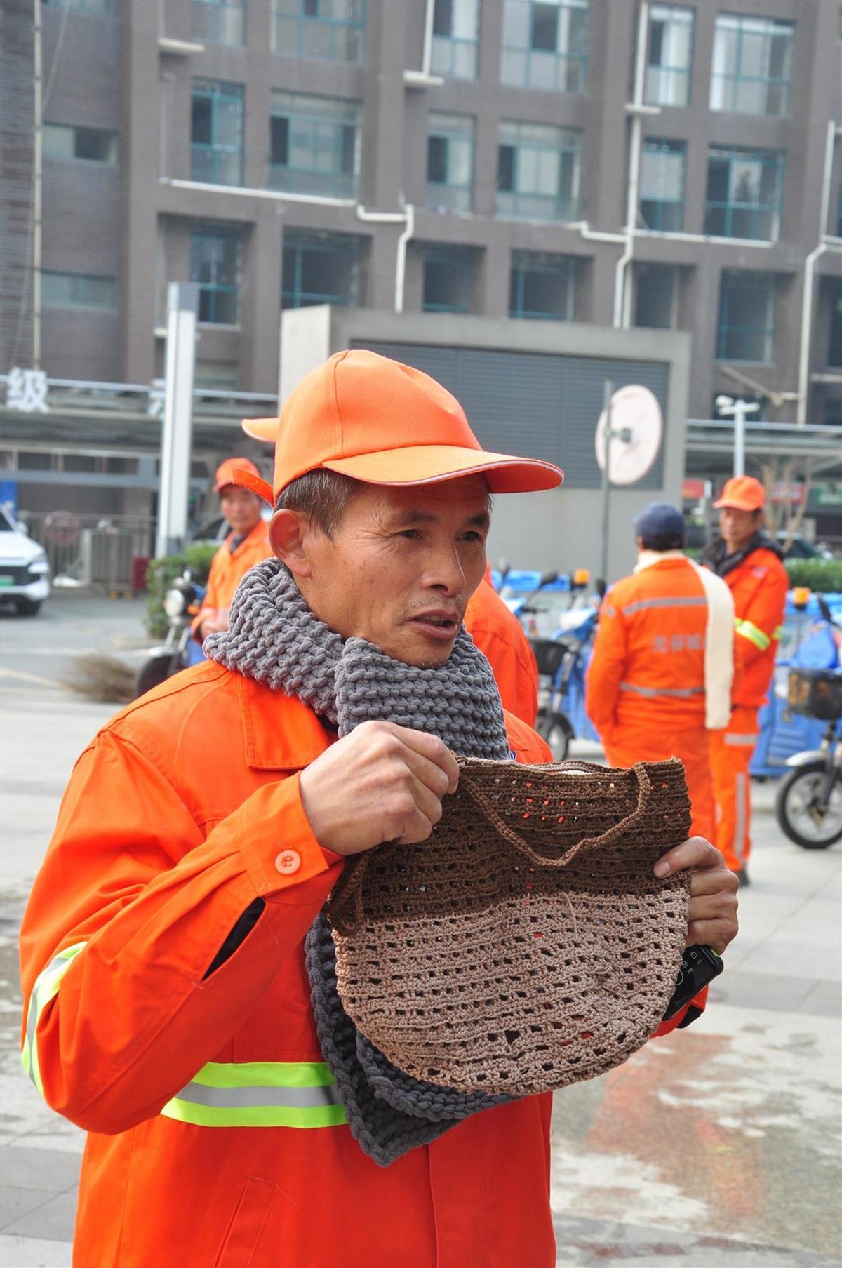 “每年新加入织围脖的大学生志愿者,都会在学校指导老师的帮助下,学会编织围脖。”武汉工程大学材料科学与工程学院党委副书记马科说,今年加入织围脖的大学生达到200多人,除了编织围脖,还创新编织了布袋,方便环卫工人装一些水杯、手套等。他寄语同学们从环卫工人身上学习“匠心精神”和奉献品质,在服务中成长,并希望与各方携手,共同推动尊崇劳动的社会风尚。
