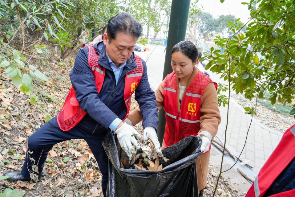 在黄鹤楼下京广铁路沿线斗级营附近,中华路街道、区城管执法局、斗级营运维公司等并肩作战,挥动扫帚清扫地面落叶与杂物,并在铁路线下的陡坡上清运杂物垃圾和枯木树枝,不放过任何一个卫生死角。区城管局园林部门技术人员手持修枝剪,精心修剪杂乱的树木枝条,让绿化带更加整齐美观。同时,武汉革命博物馆、户部巷商会等多家单位志愿者深入绿化带,仔细清理隐藏其中的废弃物,用双手守护古城的绿意与洁净。