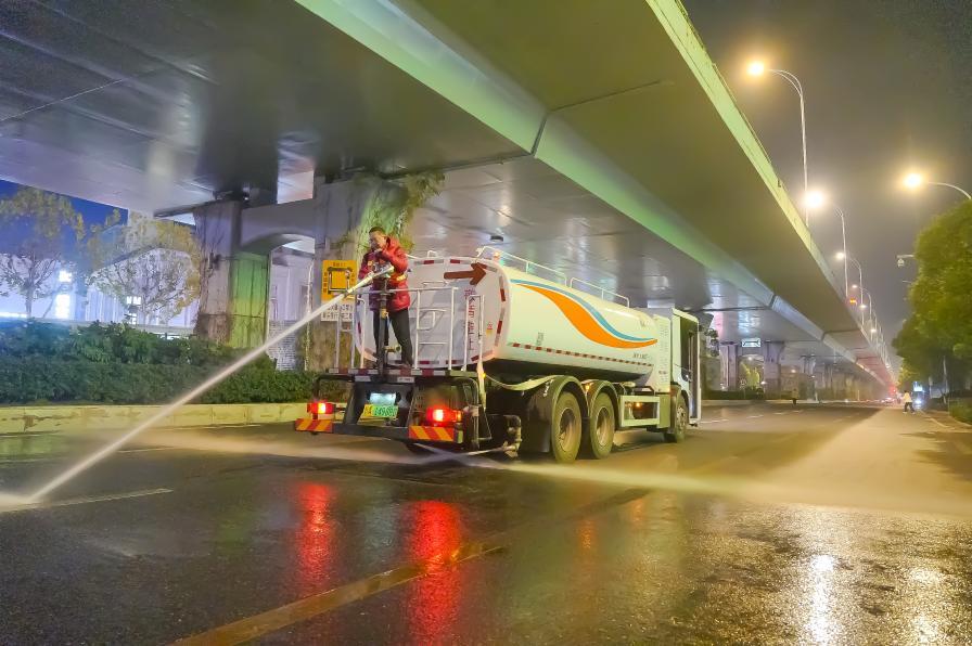 武昌区城管局环卫部门在全区范围内同步开展精细化环境综合整治,针对长江大桥、武昌火车站、徐东高架、雄楚高架等数十条主次干道及重点区域,开展全覆盖深度冲洗,确保城市主干道整洁通畅,为市民出行营造干净、安全的环境。