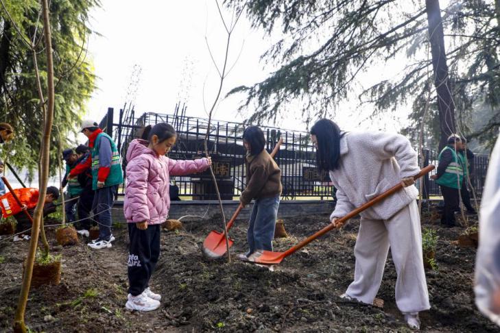 “本次活动种植的树苗以乌桕、红枫为主,这些树种适应性强、观赏价值高,预计清明前后陆续发芽展叶。”紫阳公园管理处技术人员李峻介绍,当天有40余组家庭参与活动,共种下各类树苗60余株,这片由孩子们亲手栽种的树林,未来将成为紫阳公园独特的绿色风景线。