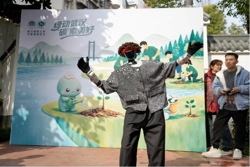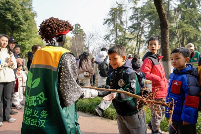 武昌区智能机器人化身“植树搭子” 植树节解锁科技护绿新玩法