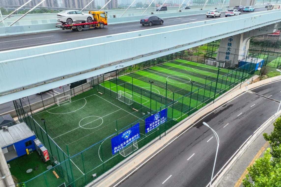 而在洪山区杨泗港快速通道下,改造则回应了全民健身的热潮。在这个曾经黄土裸露、垃圾成堆的近3万平方米空间中,5片足球场与12片标准网球场先后建成并投入使用。凭借“风雨无阻还能遮阳”的独特优势,这里自开业以来人气爆棚,不仅承接青少年体育赛事,更设立免费或低收费时段,让市民能以低成本享受高质量运动体验。这片高标准打造的桥下运动空间,不仅盘活了城市资源、补齐体育设施短板,更将以专业的场地配置、完善的服务配套,成为擦亮宜居洪山品牌的重要载体。