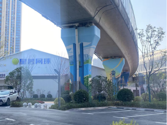 △(光谷八路九龙互通桥下空间,成为别样风景线。)
