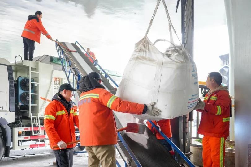 充足的物资、可靠的设备和专业的人员是打赢融雪防冻攻坚战的基础。全市聚焦“设备、物资、人员”三大关键要素,已构建起坚实的应急保障体系,市指挥部办公室已于11月起对各区及市级平台公司“三备”及应急演练情况开展实地督导。目前,全市已储备融雪剂(满足不少于10天用量)、草垫麻袋超过70万条,各型除雪除冰专用机械设备及可紧急调用的铲车、推土机、运输车辆等共计3200余台,并已完成全面检修维护,确保性能良好、随时可投入作业。所有应急队伍已完成集结和业务培训,开展融雪防冻应急演练20次,熟悉操作规程和应急预案。
