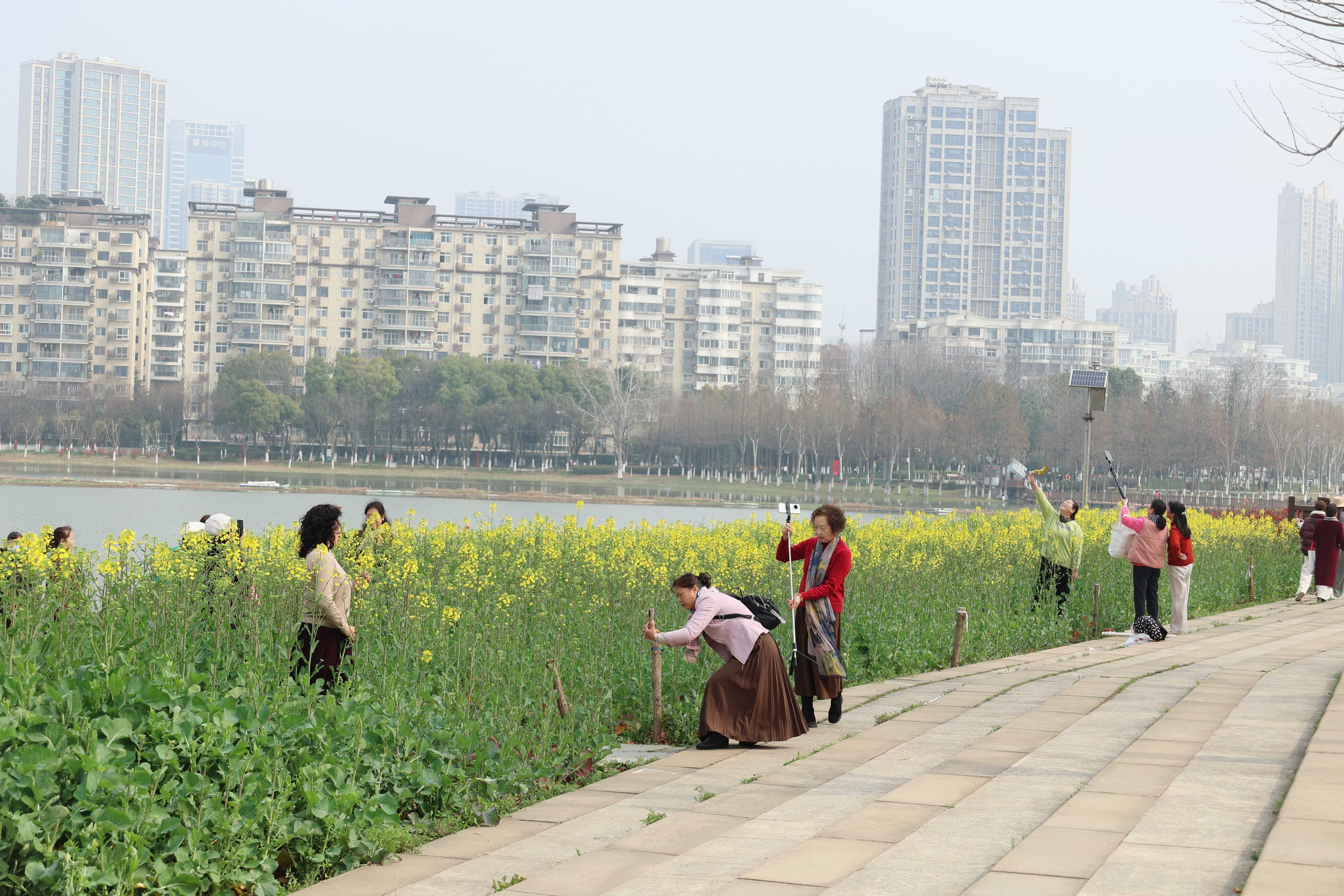 “春天到了,油菜花都开了,过来看看,我心情特别舒爽。” 家住南湖周边的市民商女士笑着对记者说,脸上洋溢着抑制不住的喜悦。