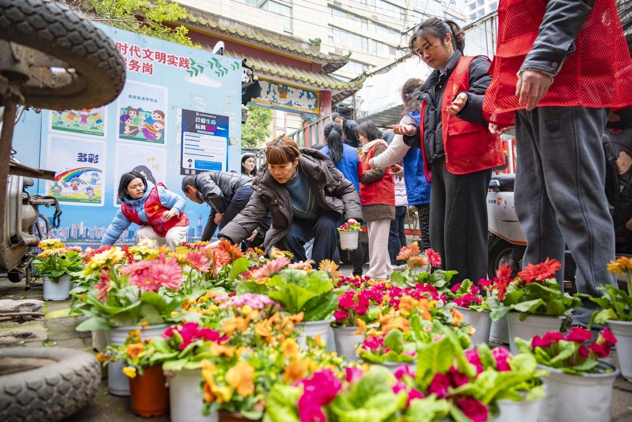 3月4日,曾在汉口火车站、江汉关广场扮靓春节城市窗口的角堇、报春、紫罗兰、郁金香等时令花卉,正式“功成身退”并开启“再就业”之旅。江汉区城市管理执法局绿化队启动撤展行动,将合计约3000盆长势良好的花卉送往多个社区,让节日景观从城市窗口延伸到居民家门口。