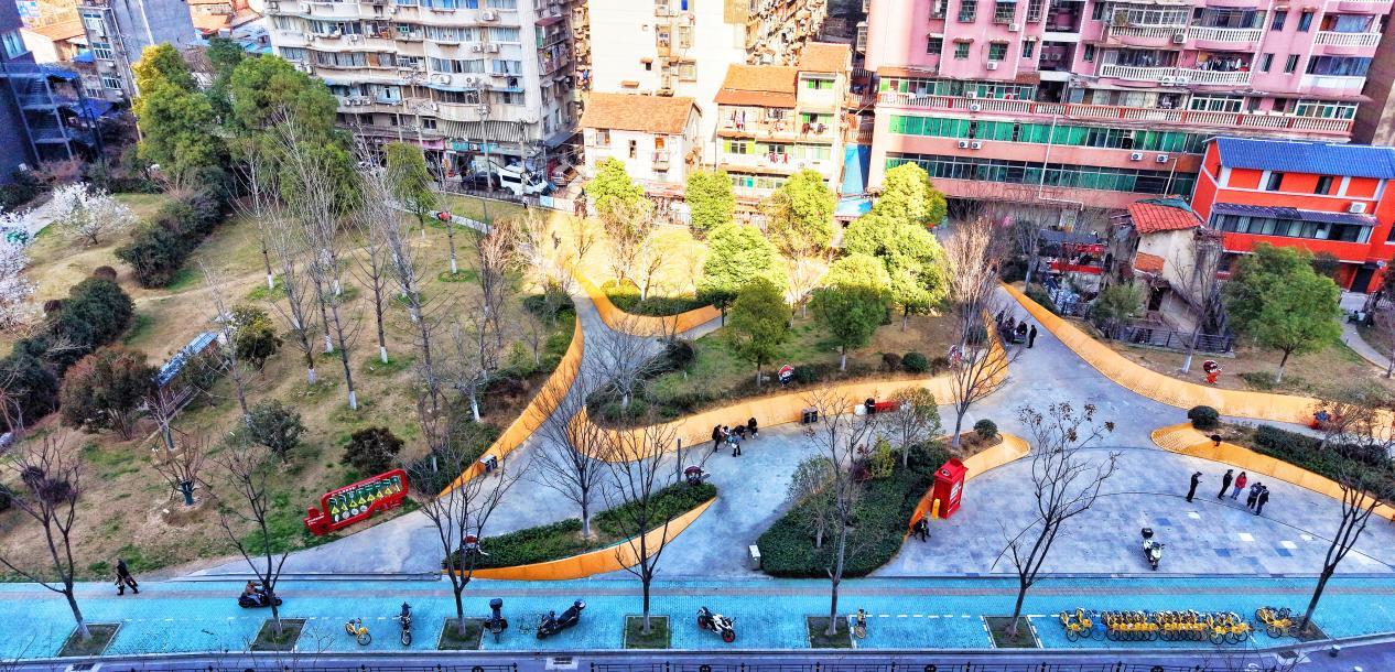 然而,紧邻历史建筑的一片空地曾是城市治理的痛点——私房、菜地、废品站,机动车与共享单车乱停乱放,与汉正街的繁华格格不入。这块“城市伤疤”,亟待管理智慧的疗愈。