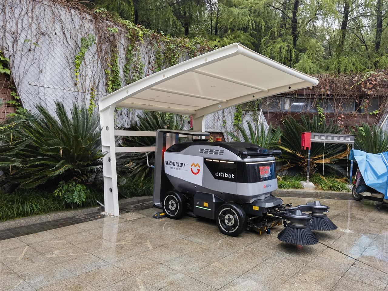 当天下午4时左右,扫地机器人完成一天的清扫作业,清扫保洁面积约2万平方米。随后,它自动回到基站待命。湖北广美城市运维公司武汉站保洁班组相关负责人向雄说,如果需要它再次出动进行清扫,它可以随时出动。