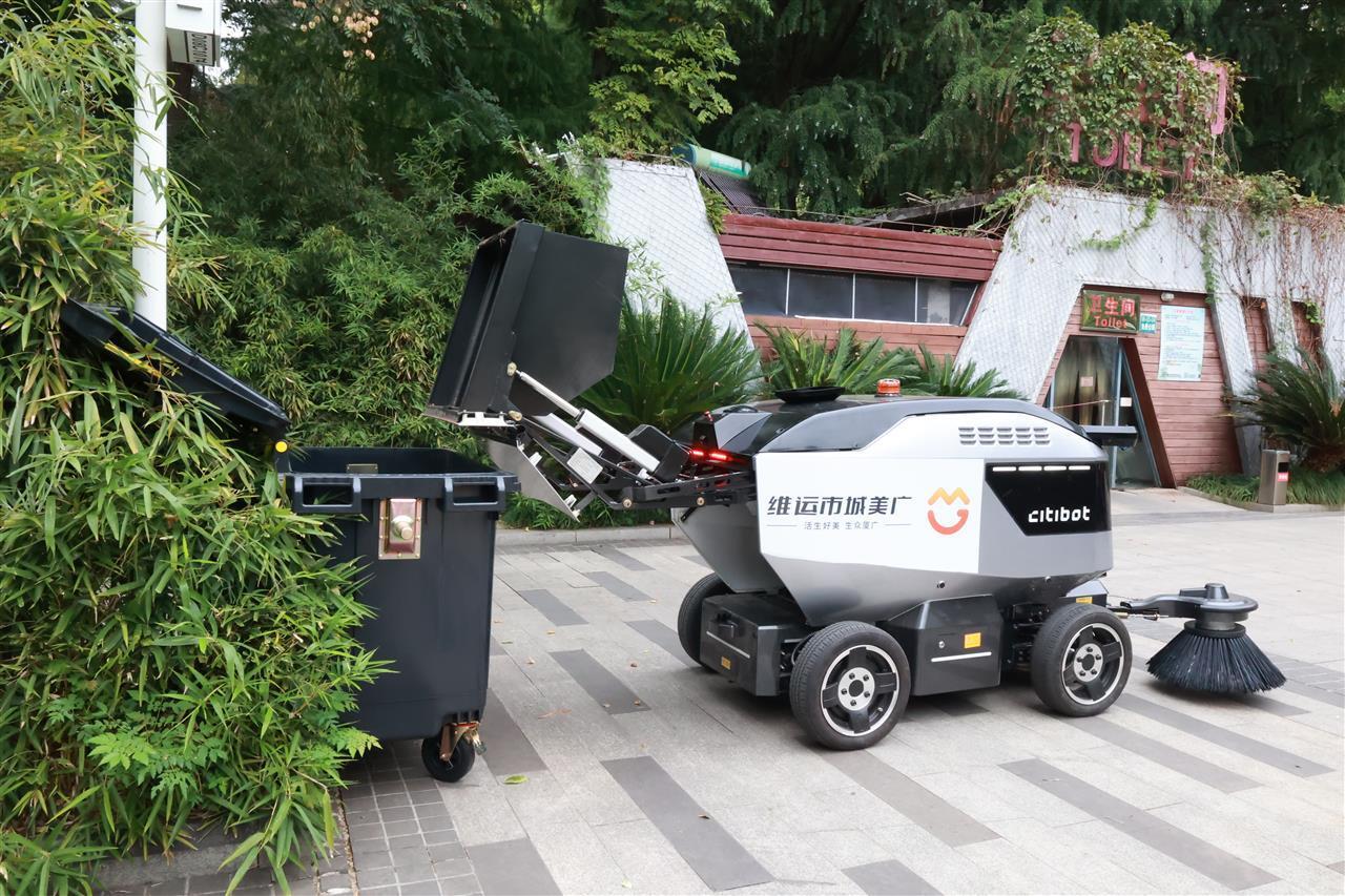 普扫约40分钟后,它穿过东西广场连通道,回到基站自动充电,如果“肚子”里的垃圾装满了,它会自动将垃圾倾倒在基站内660升的大垃圾收集桶内。完成充电补给后,它再次启动,按照设定的路线,依次清扫西广场及景观区。当天,天下着小雨,景观区落叶较多,扫地机器人便自动吸扫,树叶基本清扫干净。