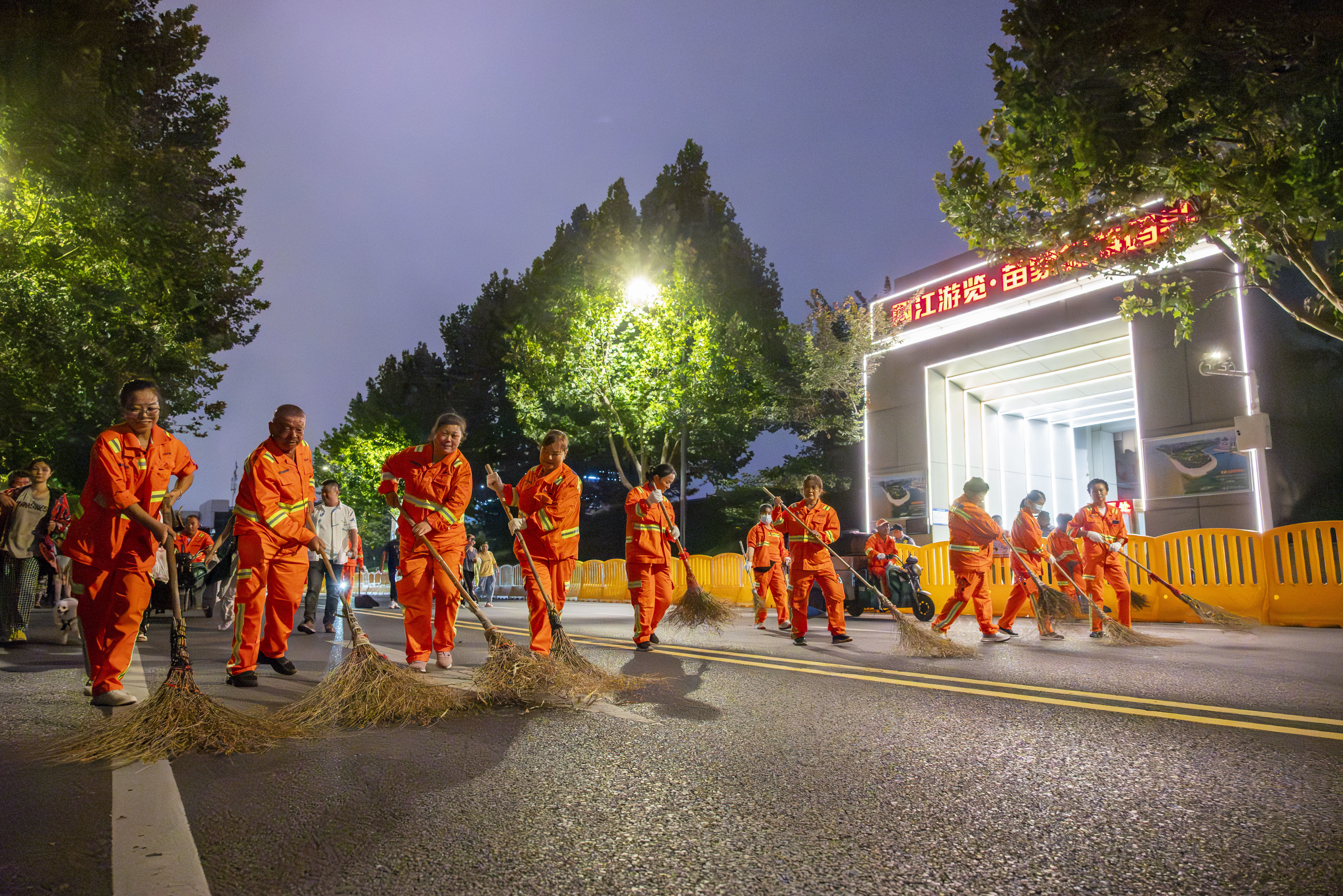 二是争分夺秒,提升环卫应急保障质效。针对活动期间出现的超规模人流量,制定专项应急预案,执行重大节点应急响应清扫保洁勤务模式。优化作业资源配置,统筹调度2600余名环卫应急力量、166台环卫作业车辆。合理增设移动公厕和垃圾投放容器,重点围绕汉口、武昌、汉阳江滩内外,协调开放环卫公厕103座、行业公厕52座,配置移动公厕318座,累计厕间2083个,科学设置公厕指引牌1450余块,新增垃圾收集容器390余个,提升市民游客体验感、满意度。建立环卫应急队伍,活动结束后,第一时间调度作业人员、机械化作业装备对现场开展深度清洗保洁,累计出动环卫车辆230台次、清运垃圾140余吨,确保垃圾无积存、无滞留,1.5小时内迅速恢复市容市貌,实现“人走场净”。