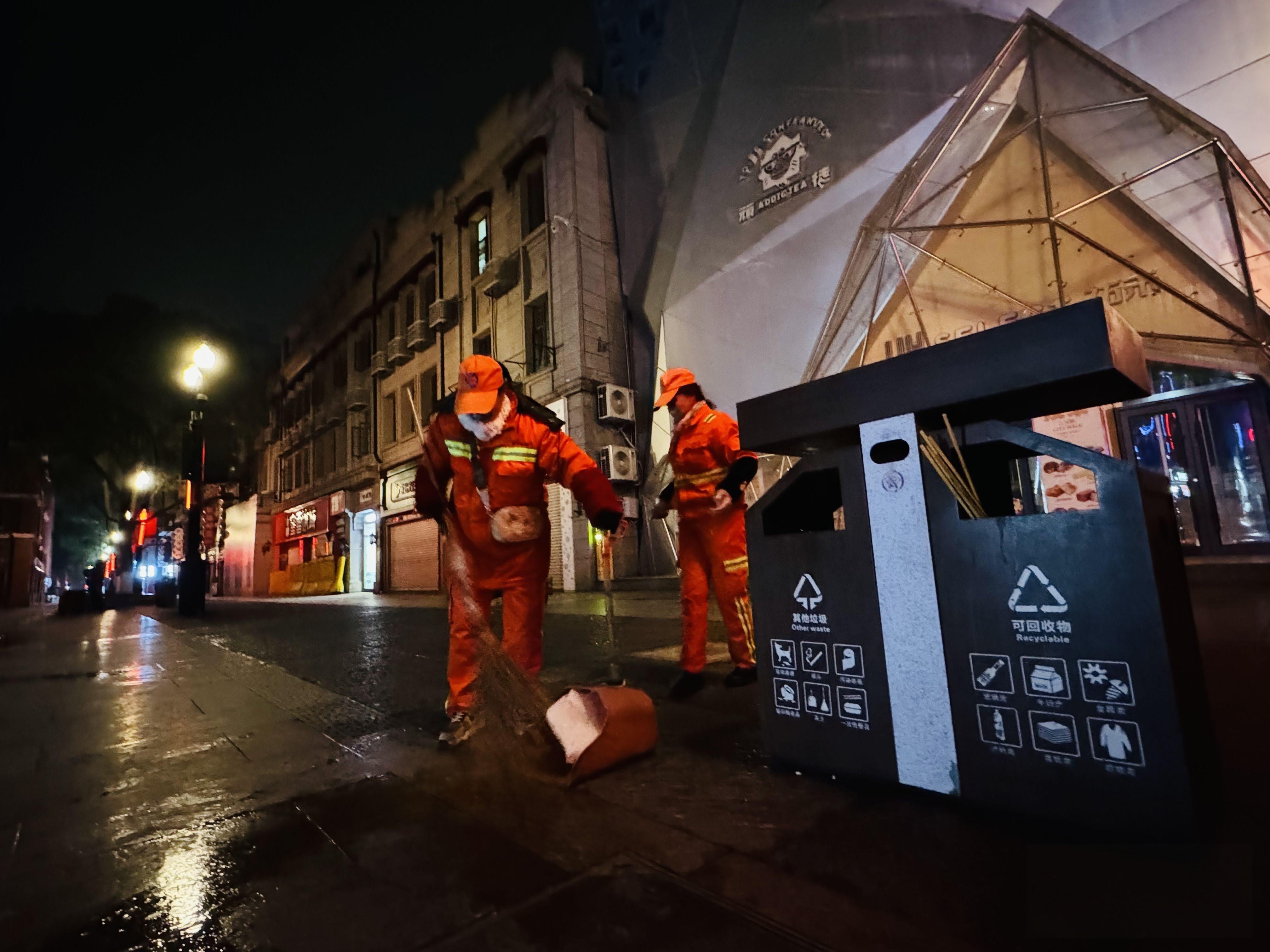 大年初一凌晨4时的江汉路:一群橙色身影晨扫迎接新年