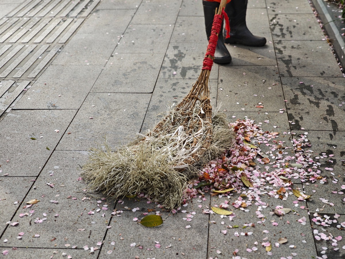 过去,工人们多采用传统的竹扫把清扫,但竹枝质地硬、缝隙大,一扫过去,树绒、花瓣不仅没被“收服”,反而随风四处飞扬,扬起阵阵灰尘。常常是一遍扫完,路面依旧“斑点”密布,工人们不得不反复折返,耗时费力,作业负担沉重。